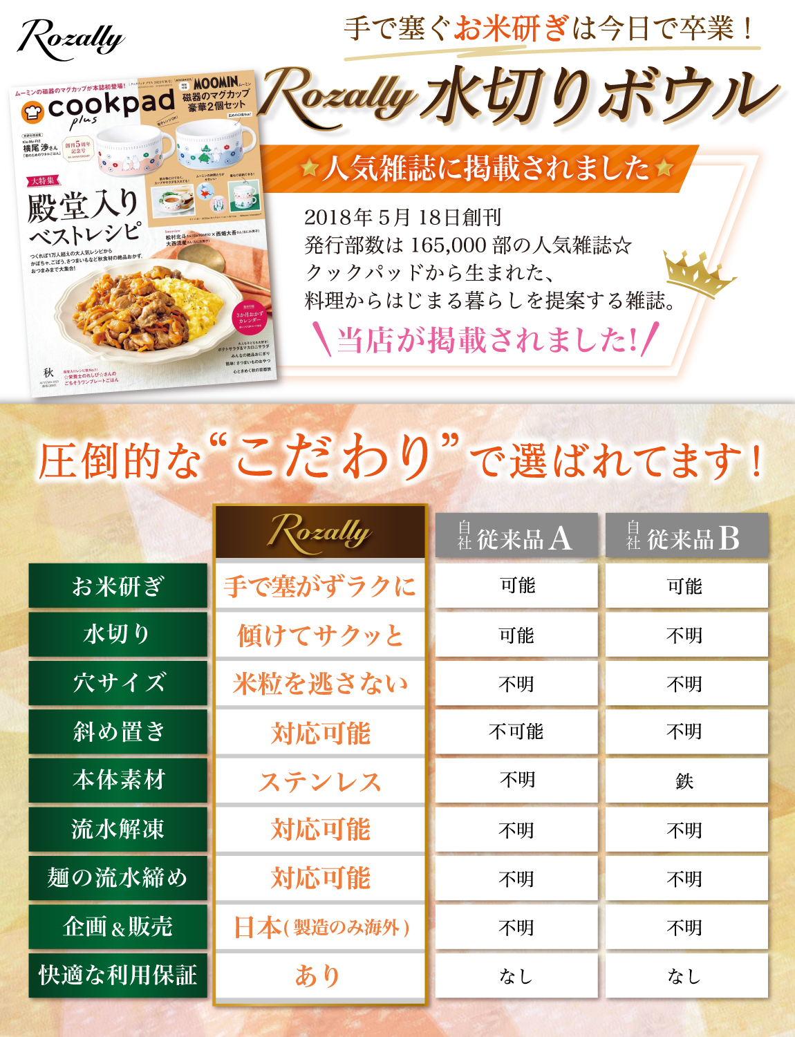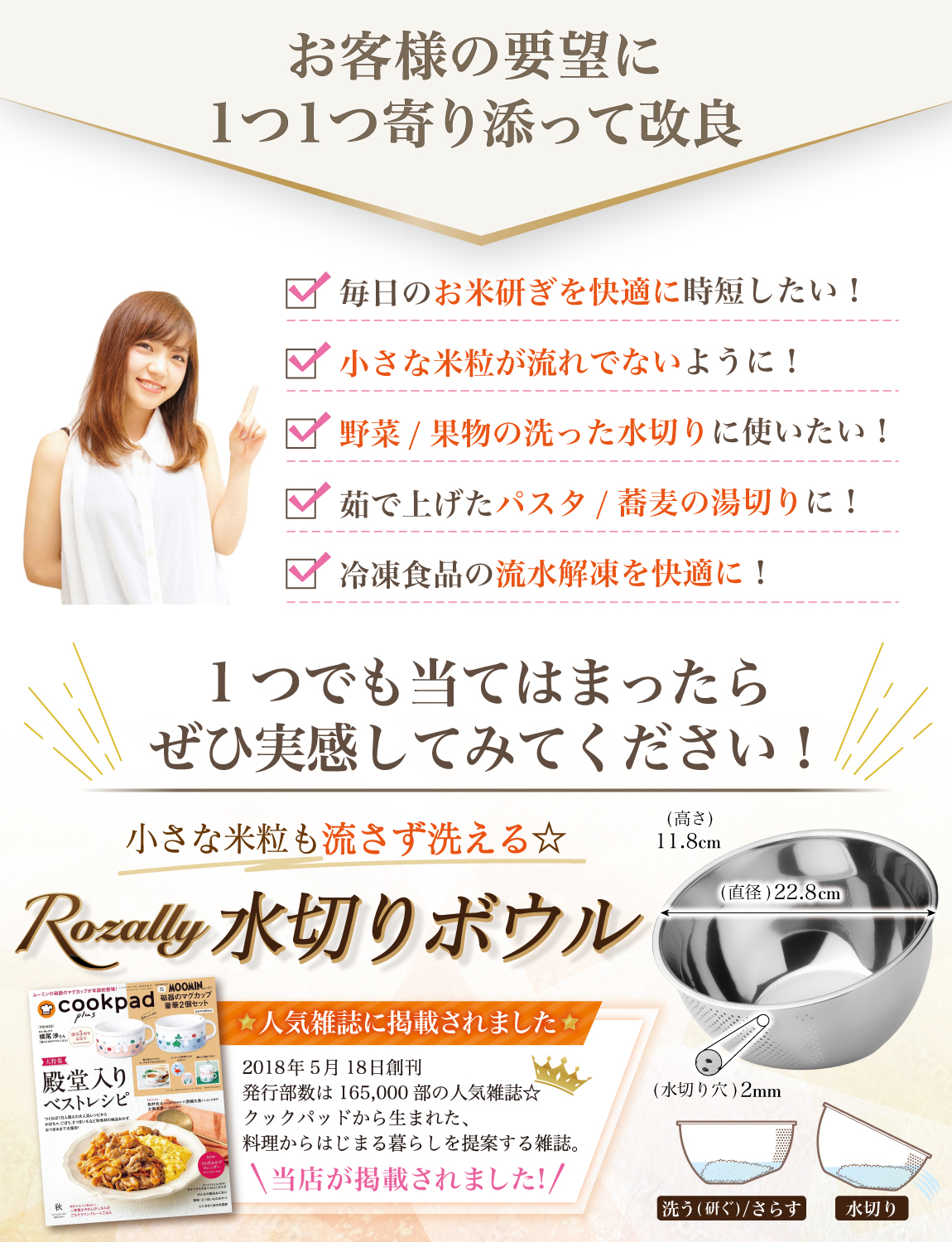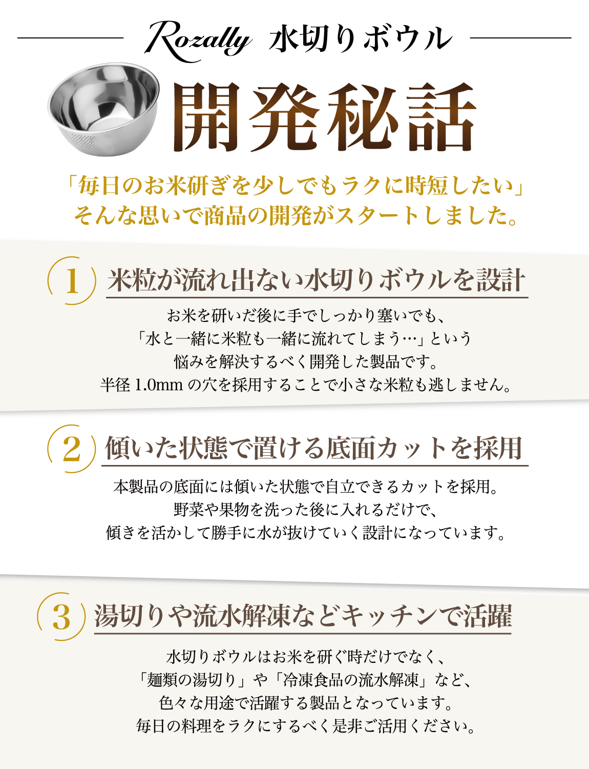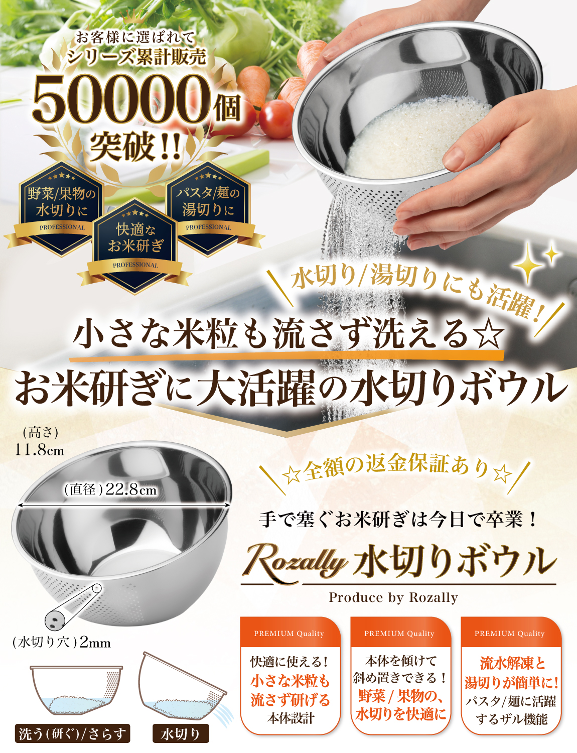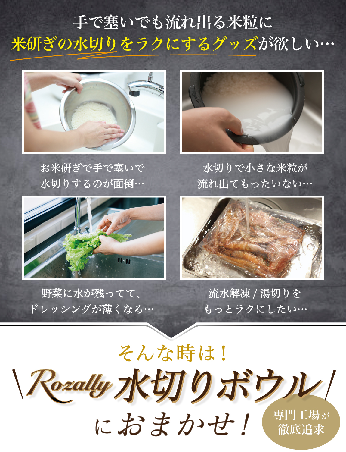 Rozally 水切りボウル ( 米研ぎボウル ) がついに正式販売開始。