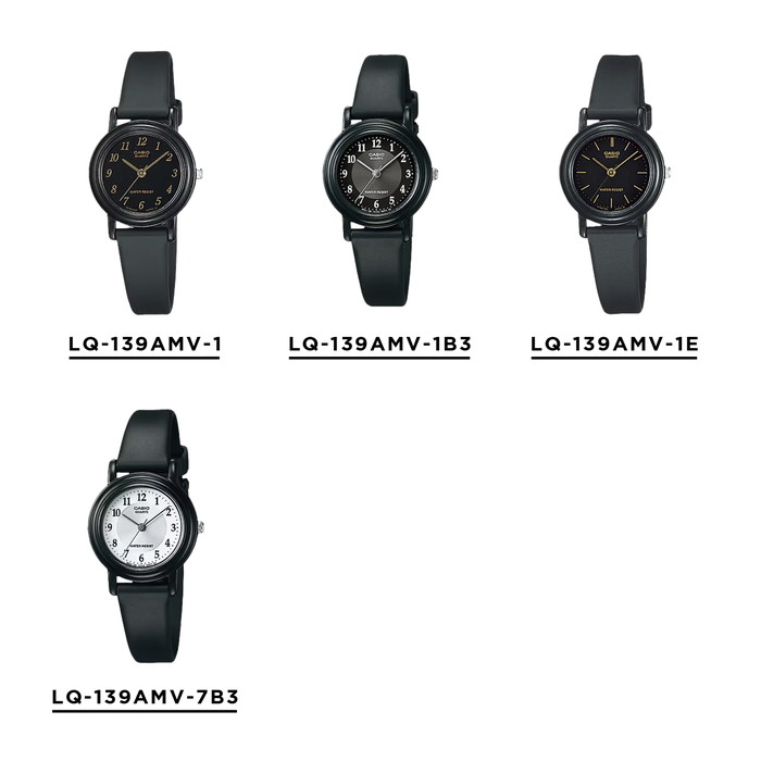 | ■ カラー ■ LQ-139AMV-1 ケース:ブラック 文字盤:ブラック ベルト:ブラック LQ-139AMV-1B3 ケース:ブラック 文字盤:ブラック / グレー ベルト:ブラック LQ-139AMV-1E ケース:ブラック 文字盤:ブラック ベルト:ブラック LQ-139AMV-7B3 ケース:ブラック 文字盤:ホワイト / シルバー ベルト:ブラック →他のカラーはコチラ | |