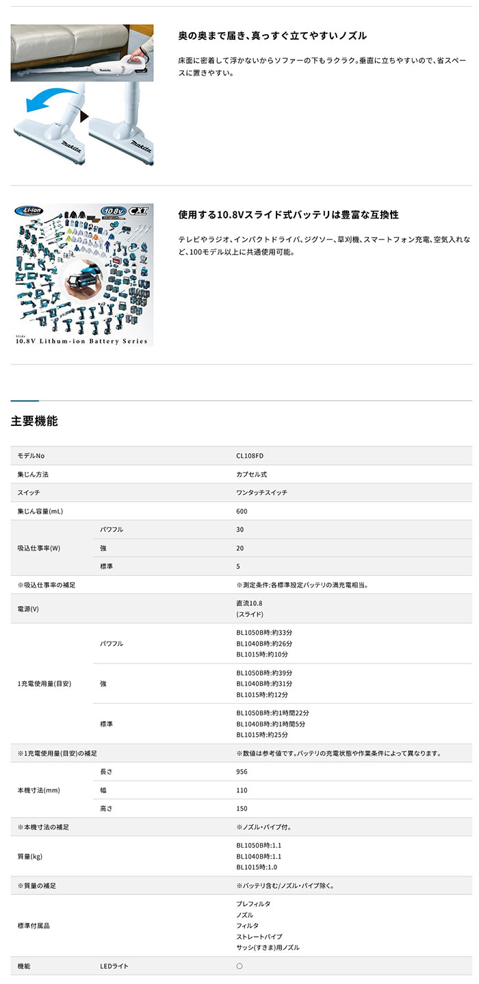 マキタ 掃除機 CL108FDZW 充電式クリーナー カプセル式 10.8V 本体のみ(バッテリ・充電器別売)