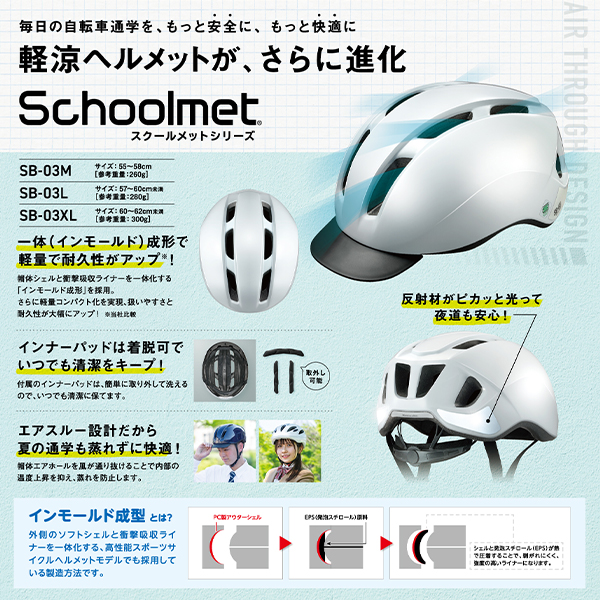 YAMAHA仕入れ OGK kabuto(オージーケーカブト) Schoolmet(スクールメット) SB-03L 普段使い/通学用自転車ヘルメット