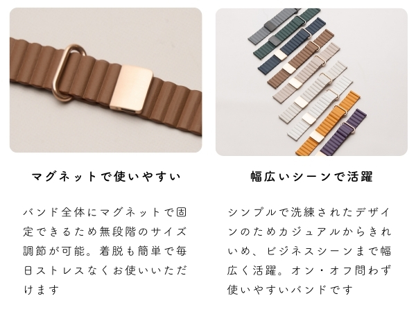 【ベルト幅 18mm/20mm】 スマートウォッチ ベルト マグネット レザー バンド 替え 軽量 くすみカラー かわいい おしゃれ 腕時計 交換バンド