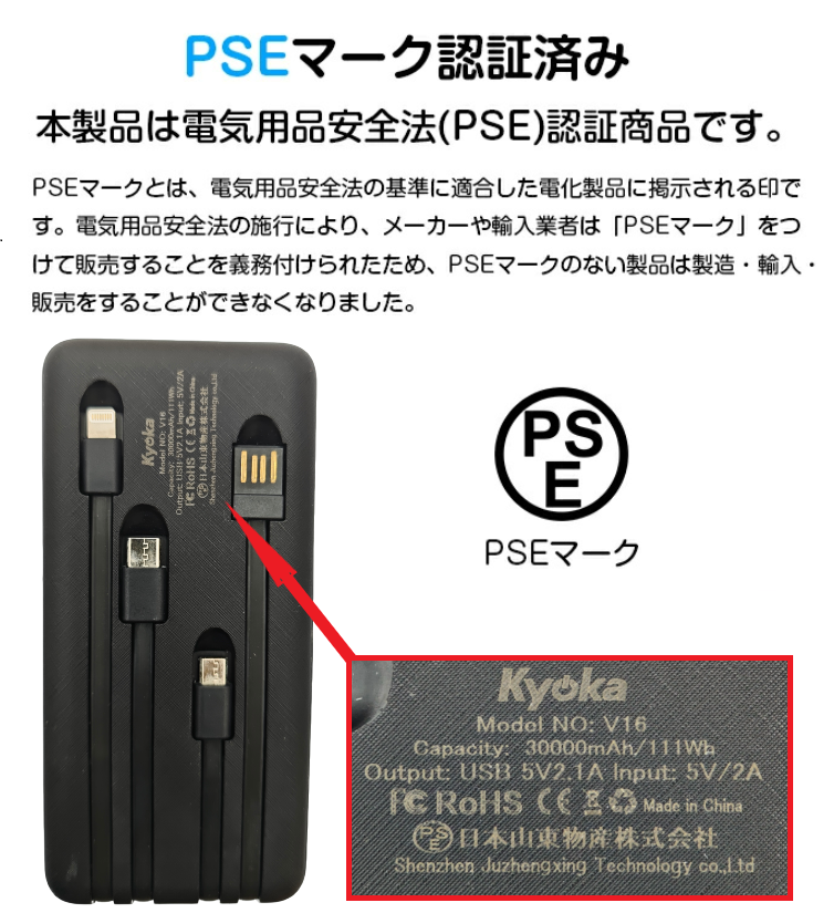 USBバッテリー容量:30000mAh(モデルV16)
