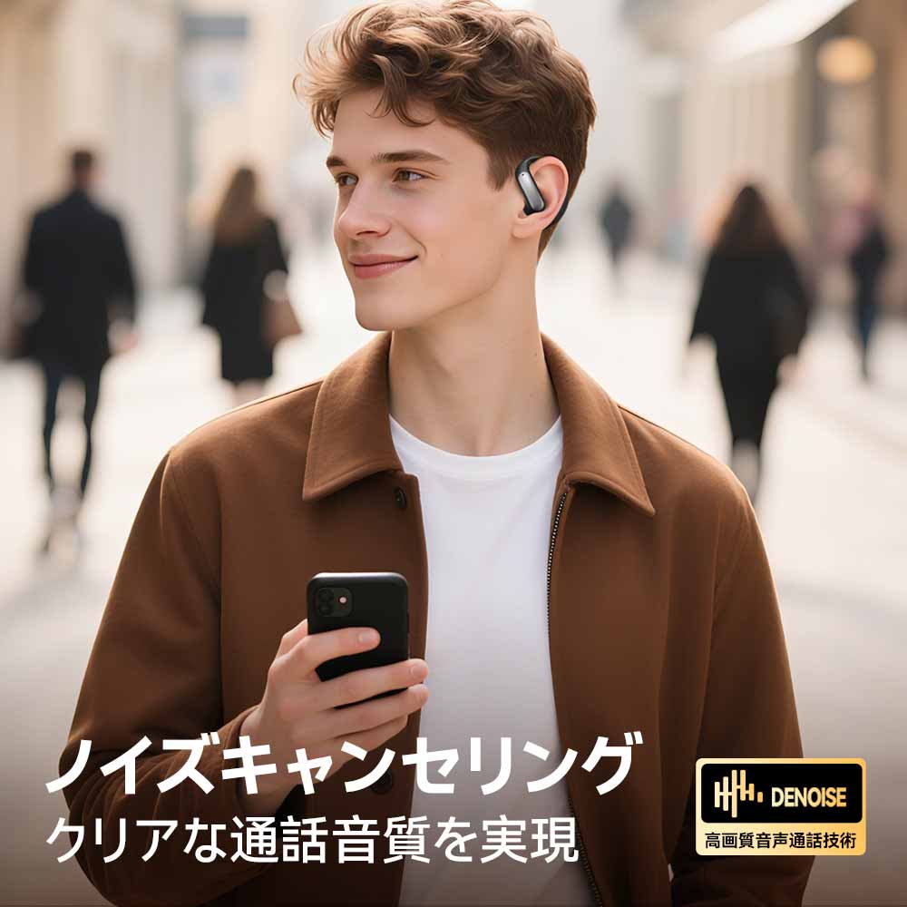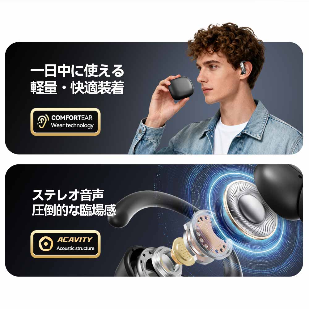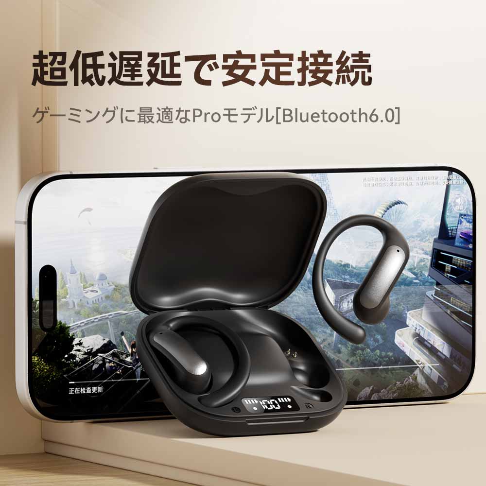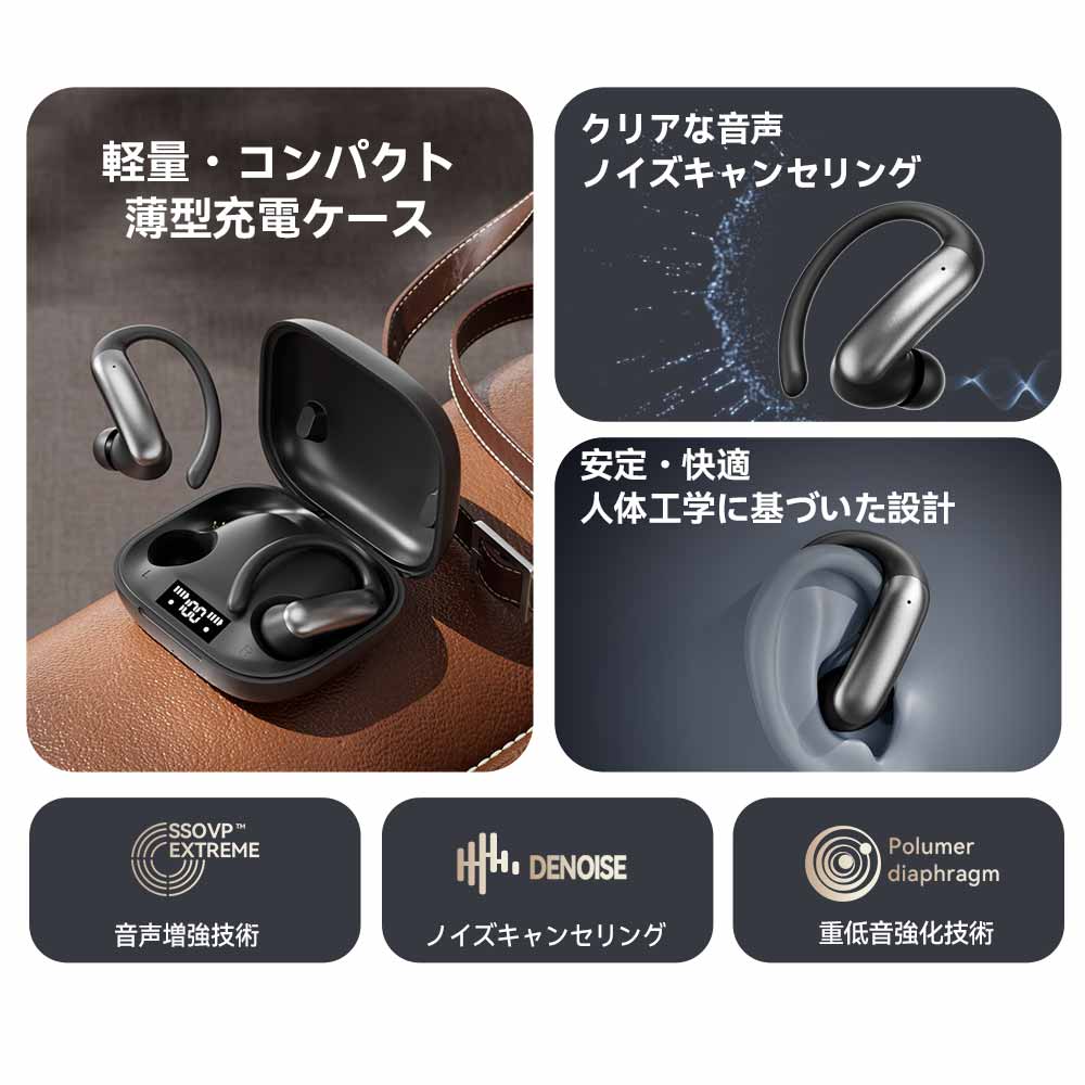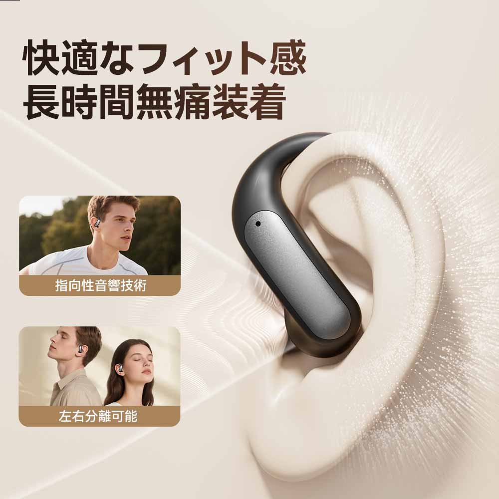 最新型の「耳掛け式」ワイヤレスイヤホン、Bluetooth6.0/5.4搭載、耳を塞がない設計と快適な装着感、臨場感のある360°全方位サラウンドサウンドを再現し、迫力のある重低音と繊細な高音域を実現、音楽も通話もクリアで没入感のある体験を提供します。