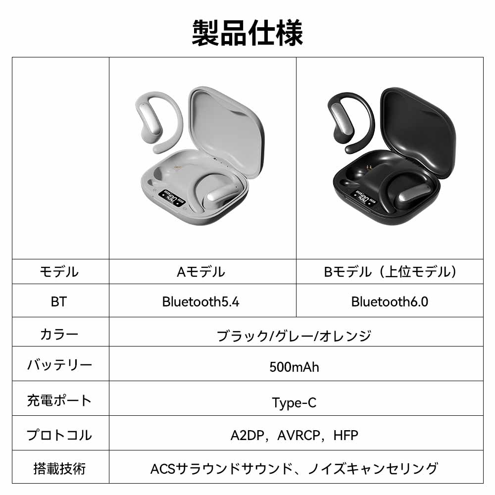 Bluetooth 6.0 イヤホン ワイヤレス 耳掛け式 マイク 付き 通話 片耳 両耳 空気転導 軽量 ノイズキャンセリング iPhone Android AAC A2DP AVRCP HFP