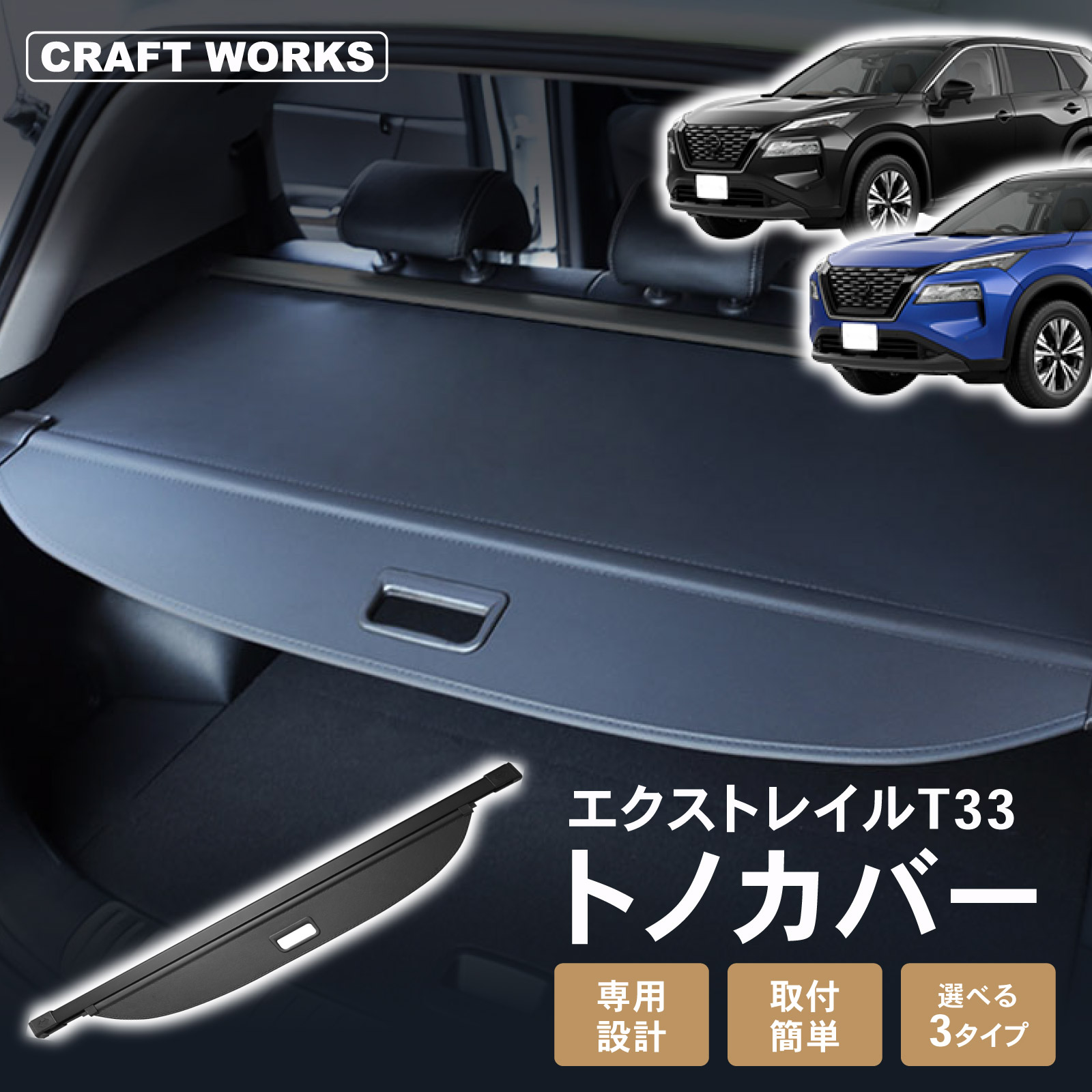 選べる3種 エクストレイル T33 トノカバー ロールシェード ラゲッジ 5人 7人 乗り 新型 荷物整理 トランク ラゲージ 内装 専用 カスタム アクセサリー