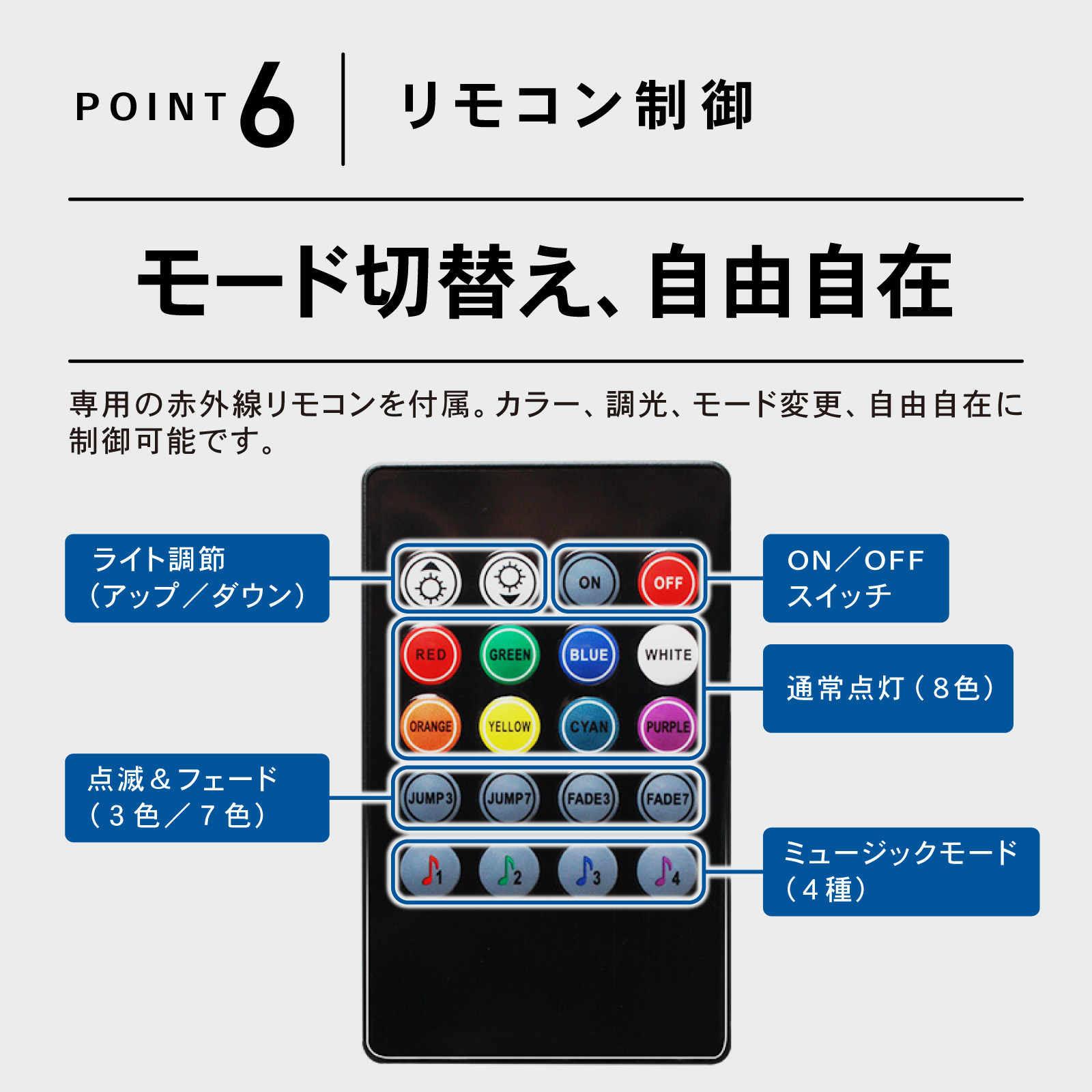 ・ライトカラー: 8色切替