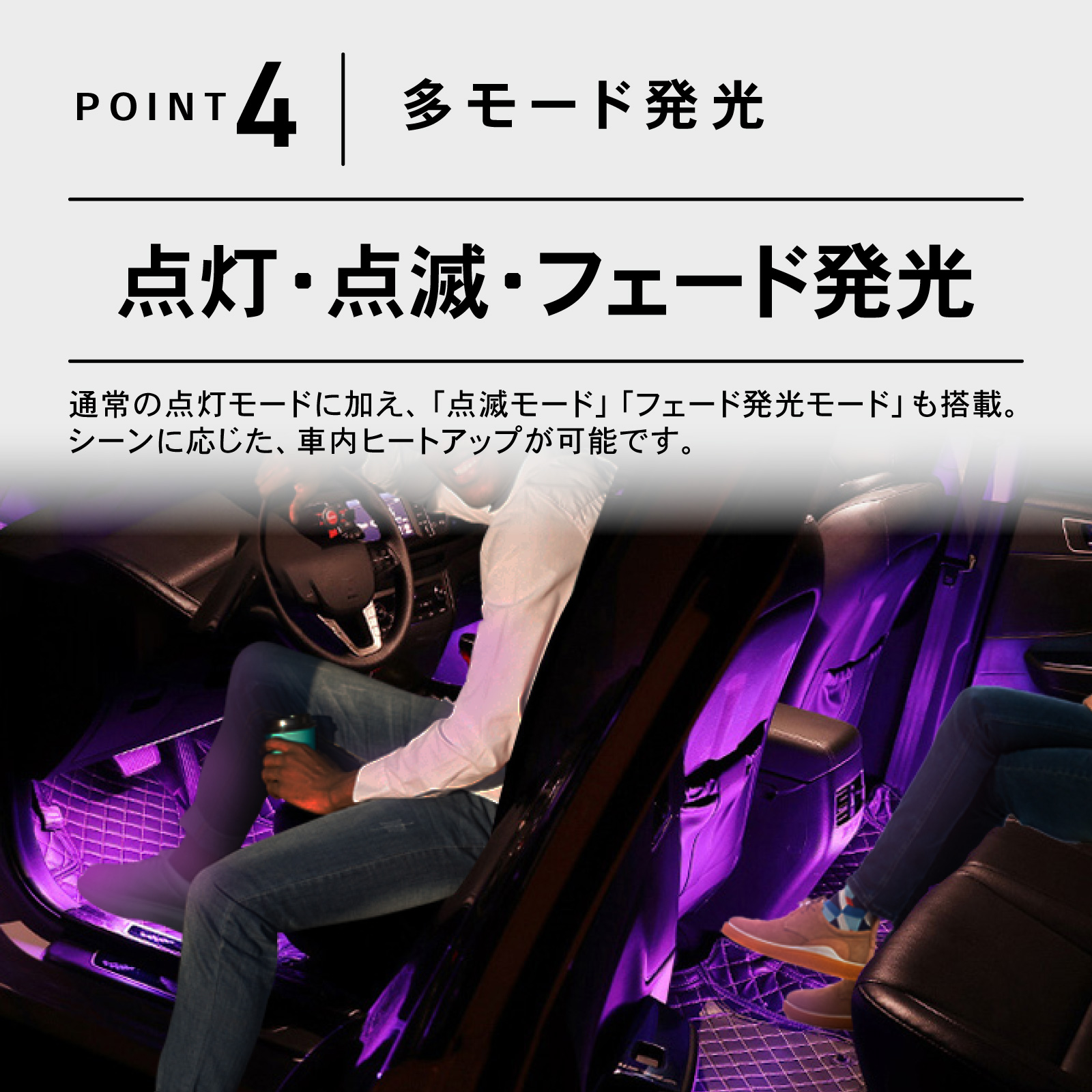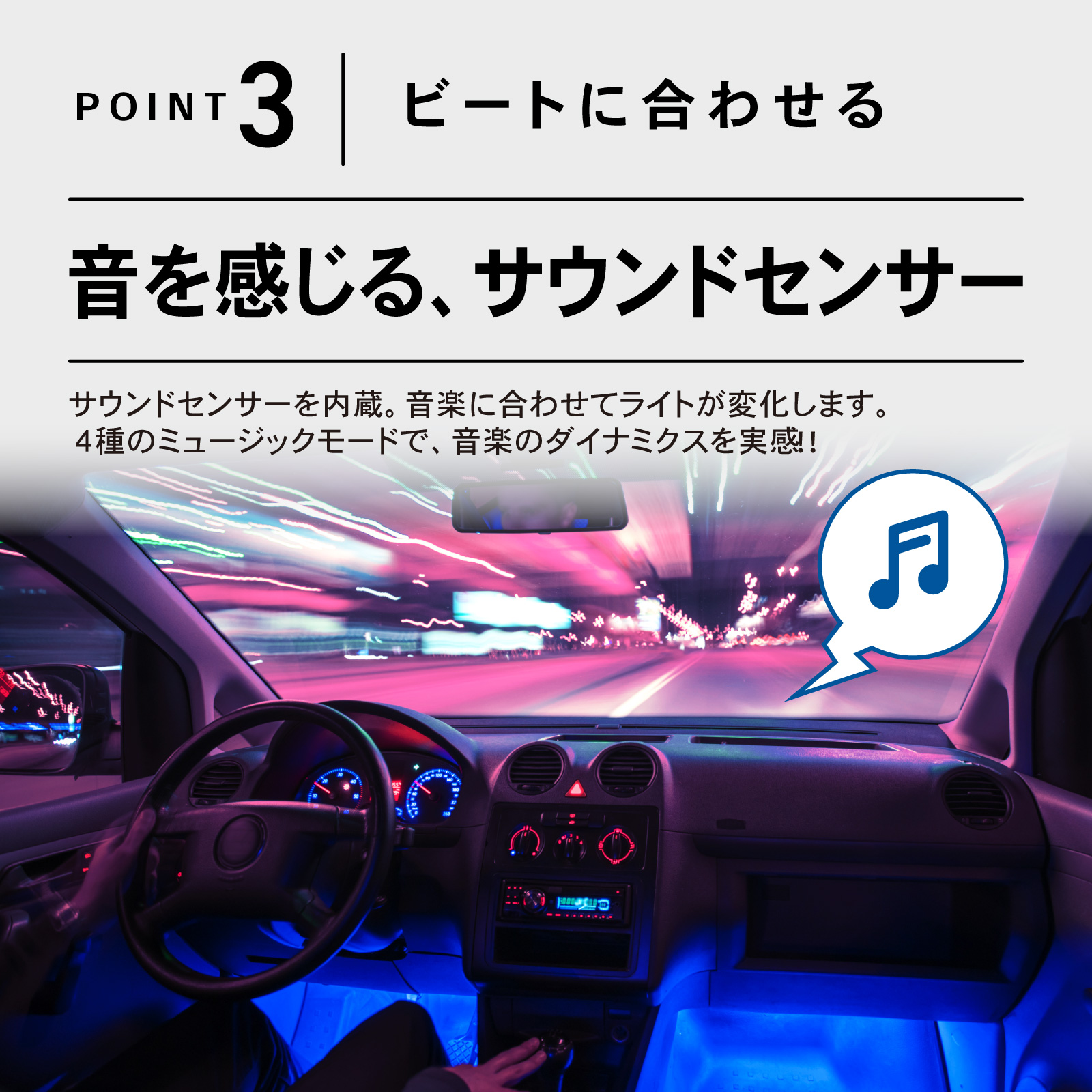LED テープライト 車 車載 装飾 ランプ 車内 イルミネーション フットライト 調光 足下 照明 音に反応 お手軽 ドレスアップ