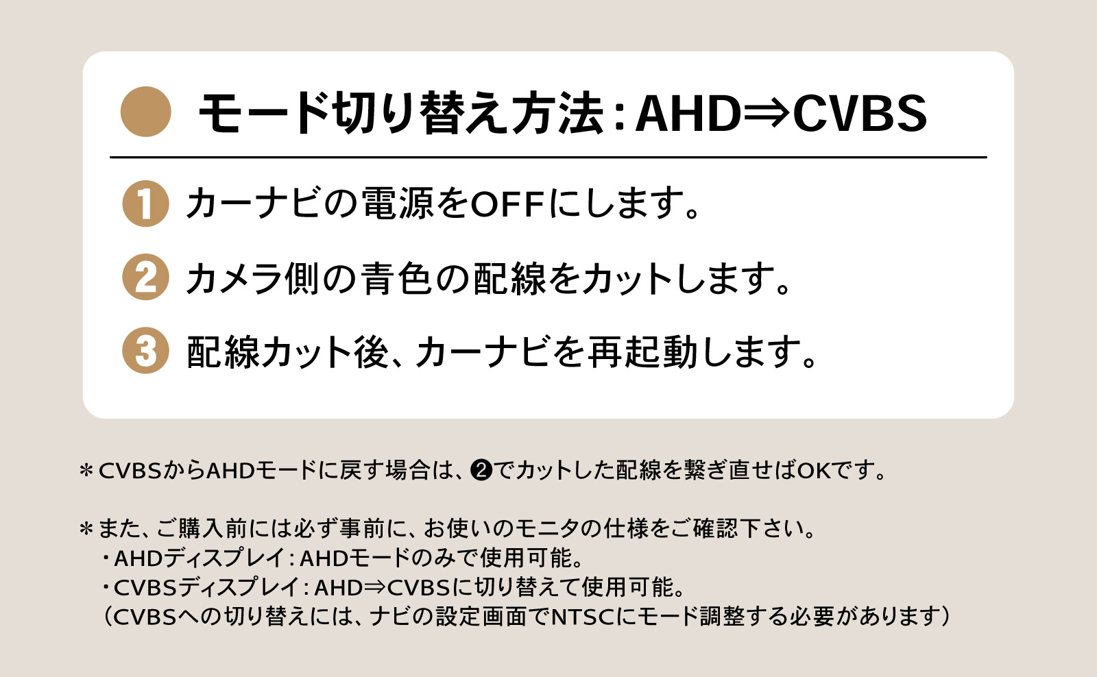 *製品の動作確認は、必ず、自動車への配線取回し等の前に行って下さい。