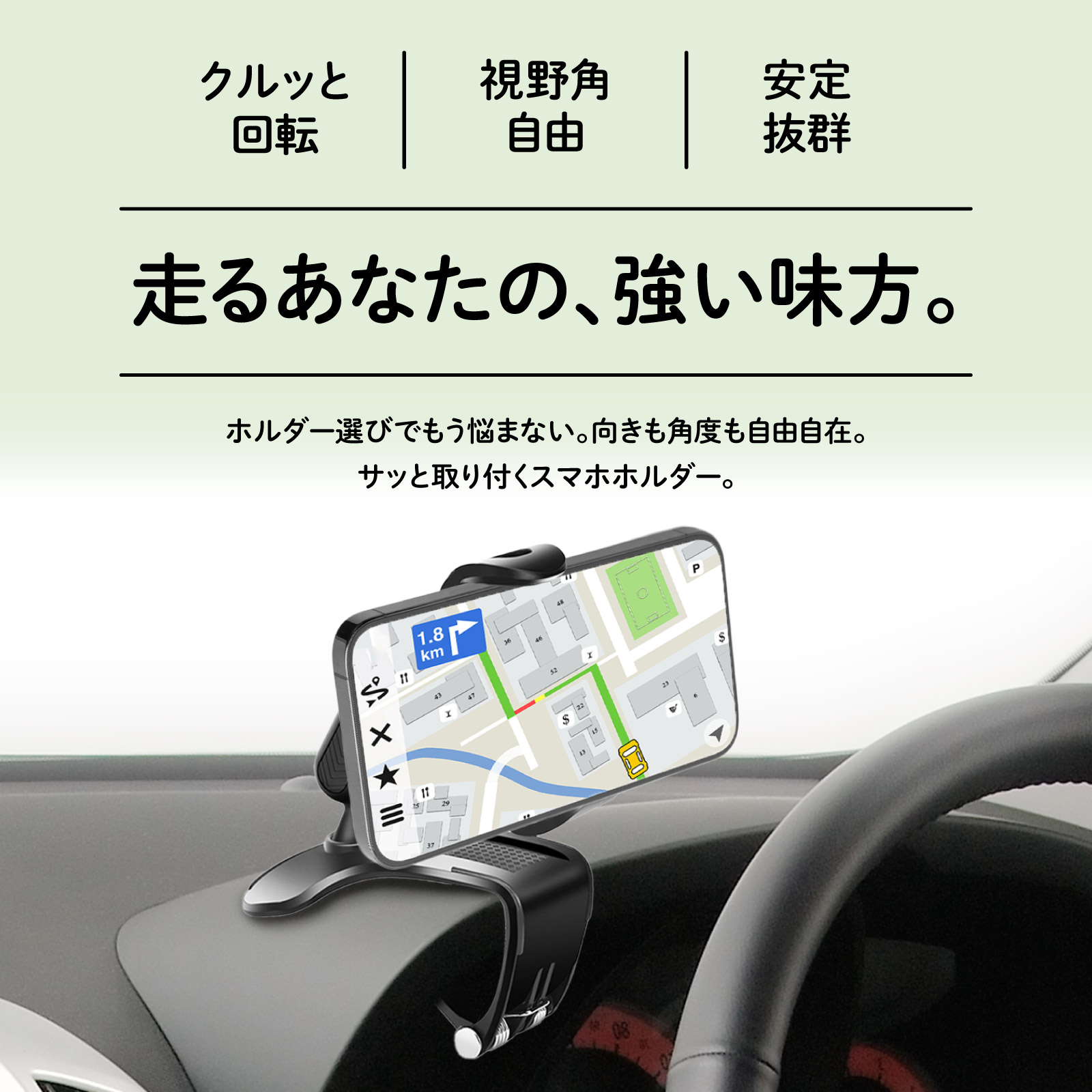 | 商品名 | [累計販売個数2000個突破] スマホホルダー 車 クリップ式スマホホルダー 回転 強力クリップ 車用 車用品 カー用品 スマホ スマートフォン スマホスタンド 車載 動画視聴 ビデオ通話 おすすめ スマホ置 ダッシュボード サンバイザー 360度 iPhone クルマ |