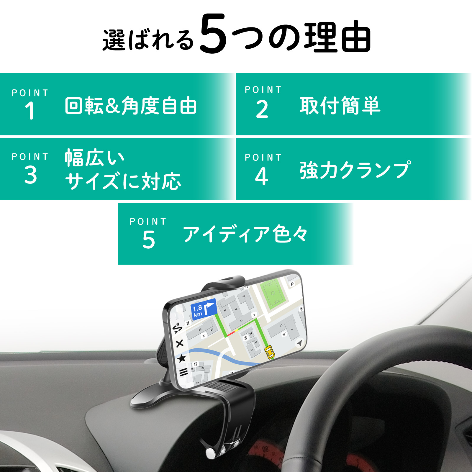 ・商品名:クリップタイプ車載ホルダー