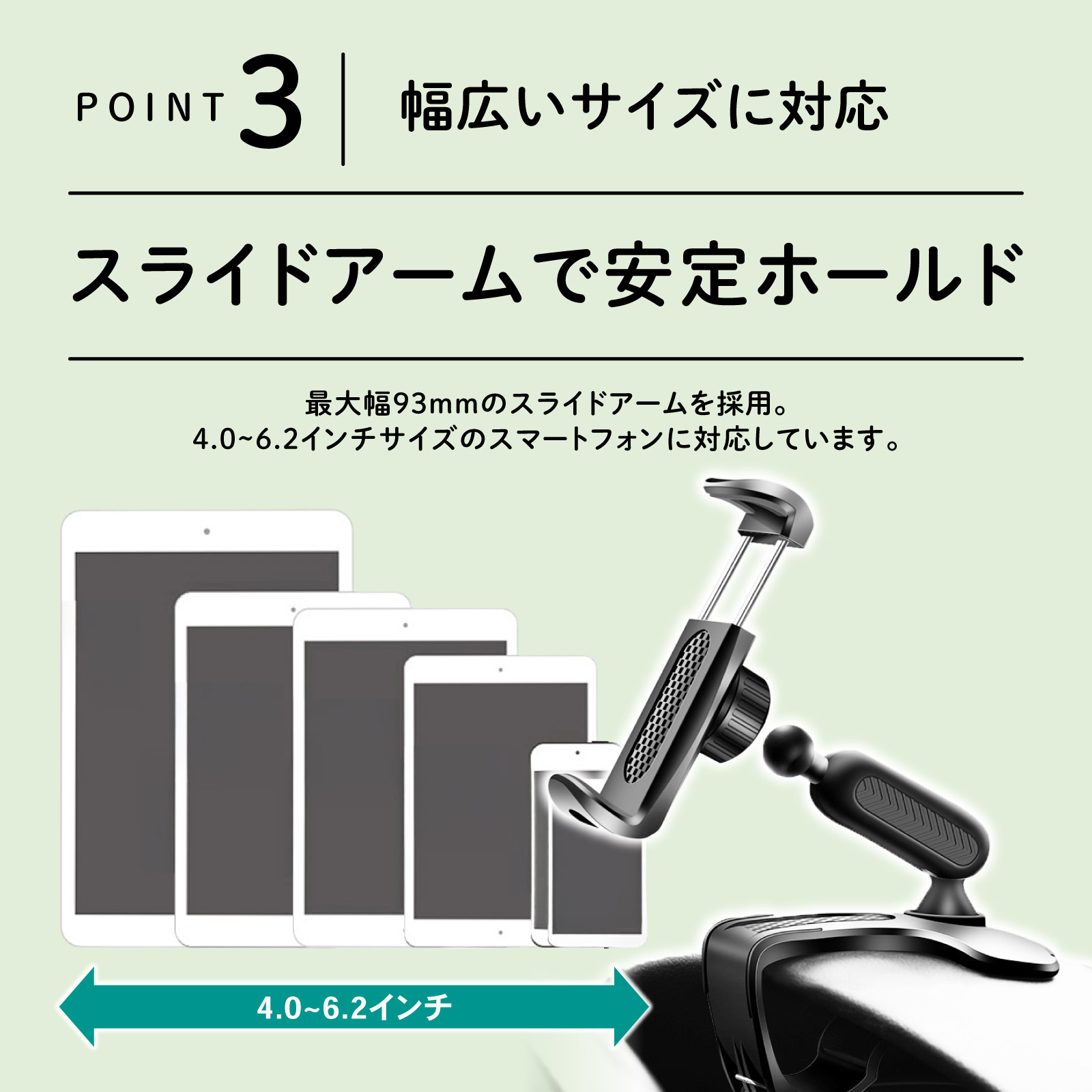 ・対応スマホサイズ:4.0〜6.2インチ