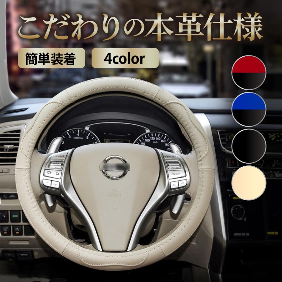 ハンドルカバー 自動車 本革 おしゃれ 軽自動車 レザー ブラック グリップ 高級感 ステッチ フィット カー用品 通気性 普通車 簡単 吸収性 上質 シンプル
