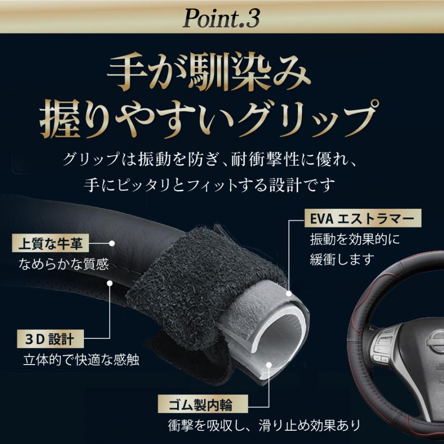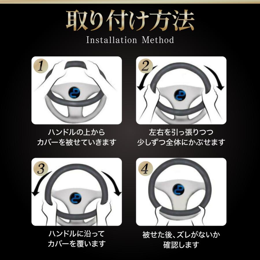 商品名:ハンドルカバー 自動車 本革 おしゃれ 軽自動車 レザー ブラック グリップ 高級感 ステッチ フィット カー用品 通気性 普通車 簡単 吸収性 上質 シンプル