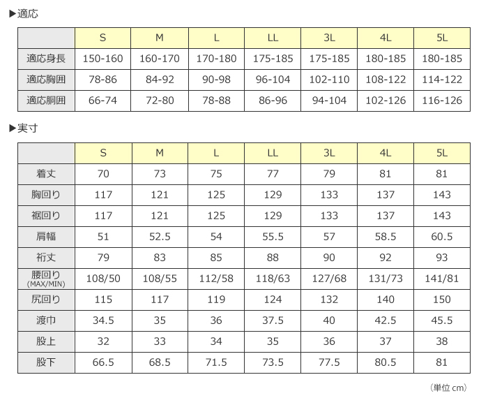 | サイズ | S/M/L/LL/3L/4L/5L |