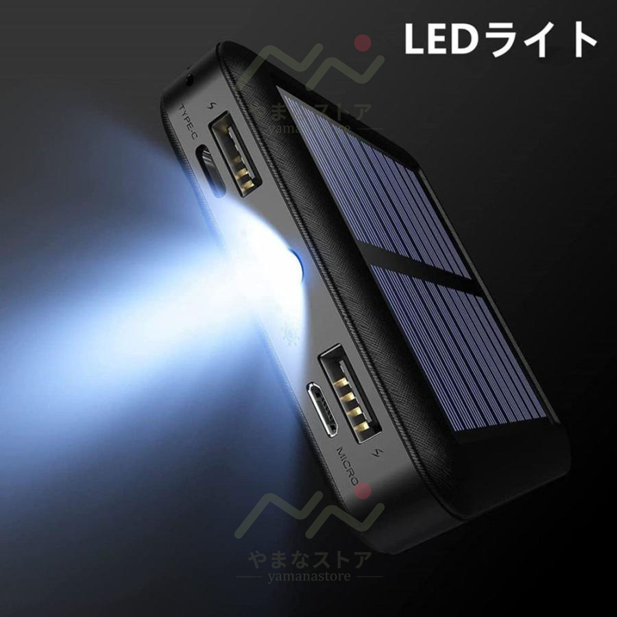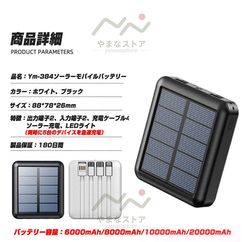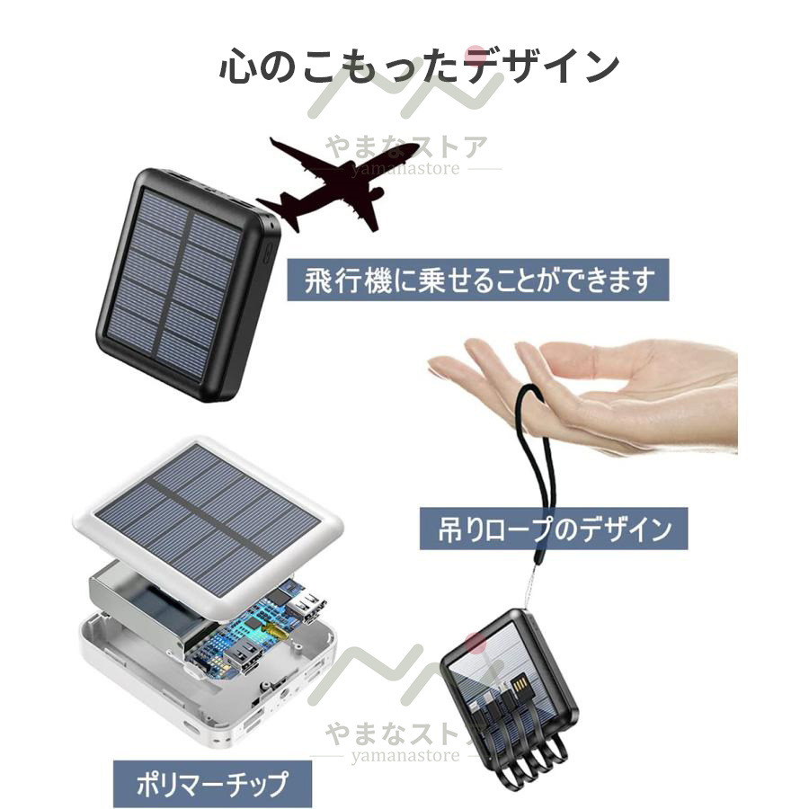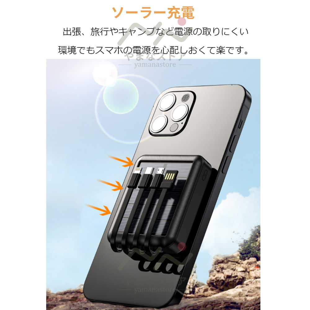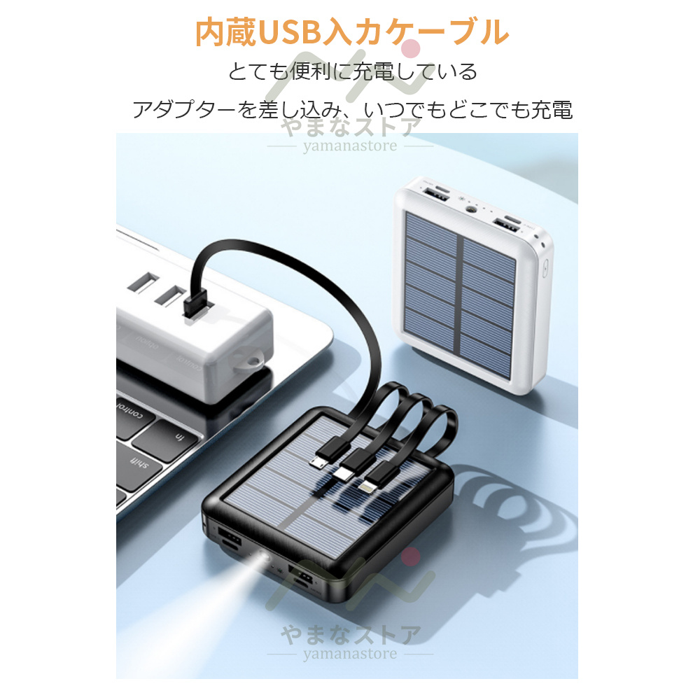モバイルバッテリー 20000mAh 大容量 軽量 小型 10000mAh 薄型 ソーラー充電 5台同時充電 ケーブル内蔵 iPhone/iPad/Android対応 急速充電 PSE認証済
