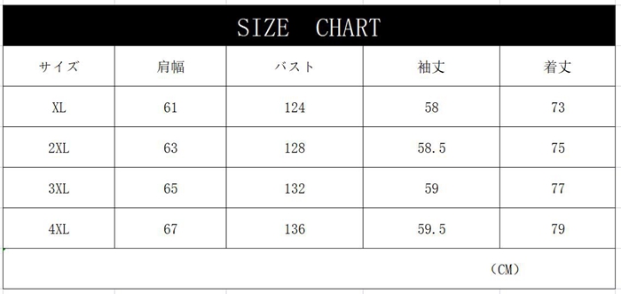 【サイズ】XL(日本サイズM相当)、2XL(日本サイズL相当)、3XL(日本サイズXL相当)、4XL(日本サイズ2XL相当)