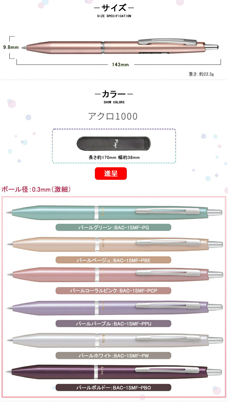 名入れ素彫り パイロット PILOT アクロ1000 Acro1000 ボールペン ペンケース付き 初期装填ブラック 0.3mm BAC-1SMF/0.5mm BAC-1SEF/0.7mm BAC-1SF 全18色 油性ボールペン ギフト プレゼント お祝い 記念品 誕生日