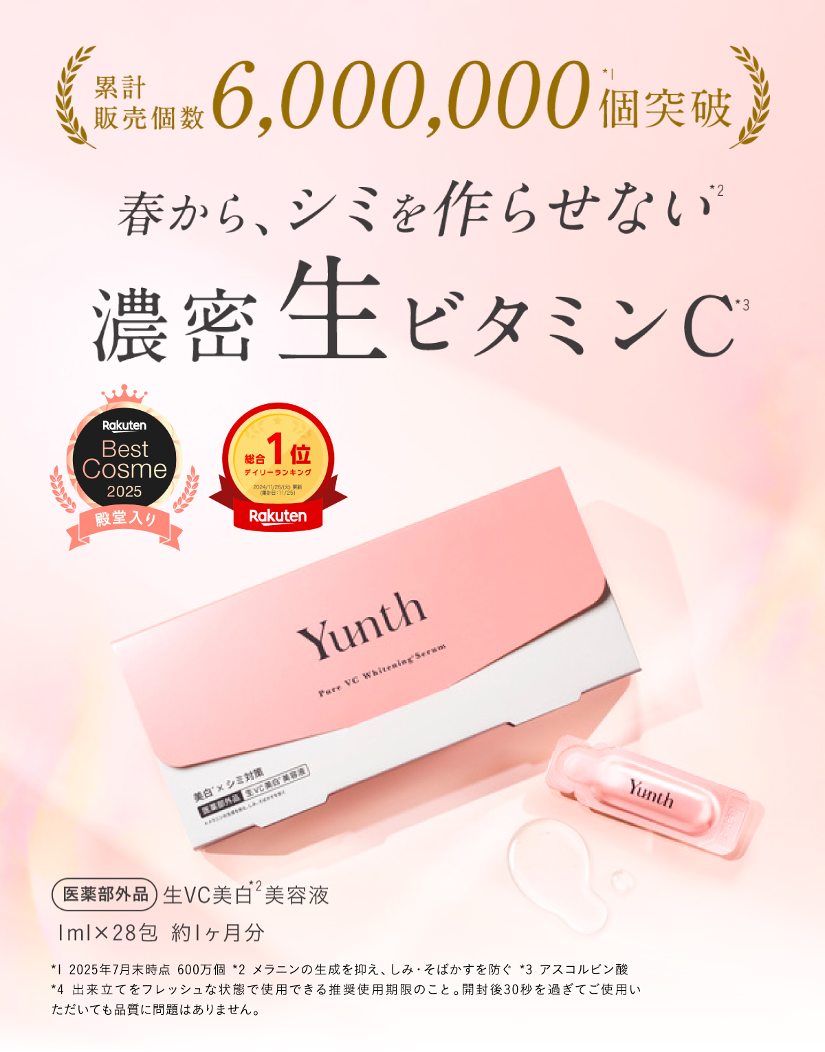 美容液 ビタミンC Yunth(ユンス)導入美容液28包入り 純度100%の生ビタミンC 有効成分アスコルビン酸 水不使用 防腐剤フリー