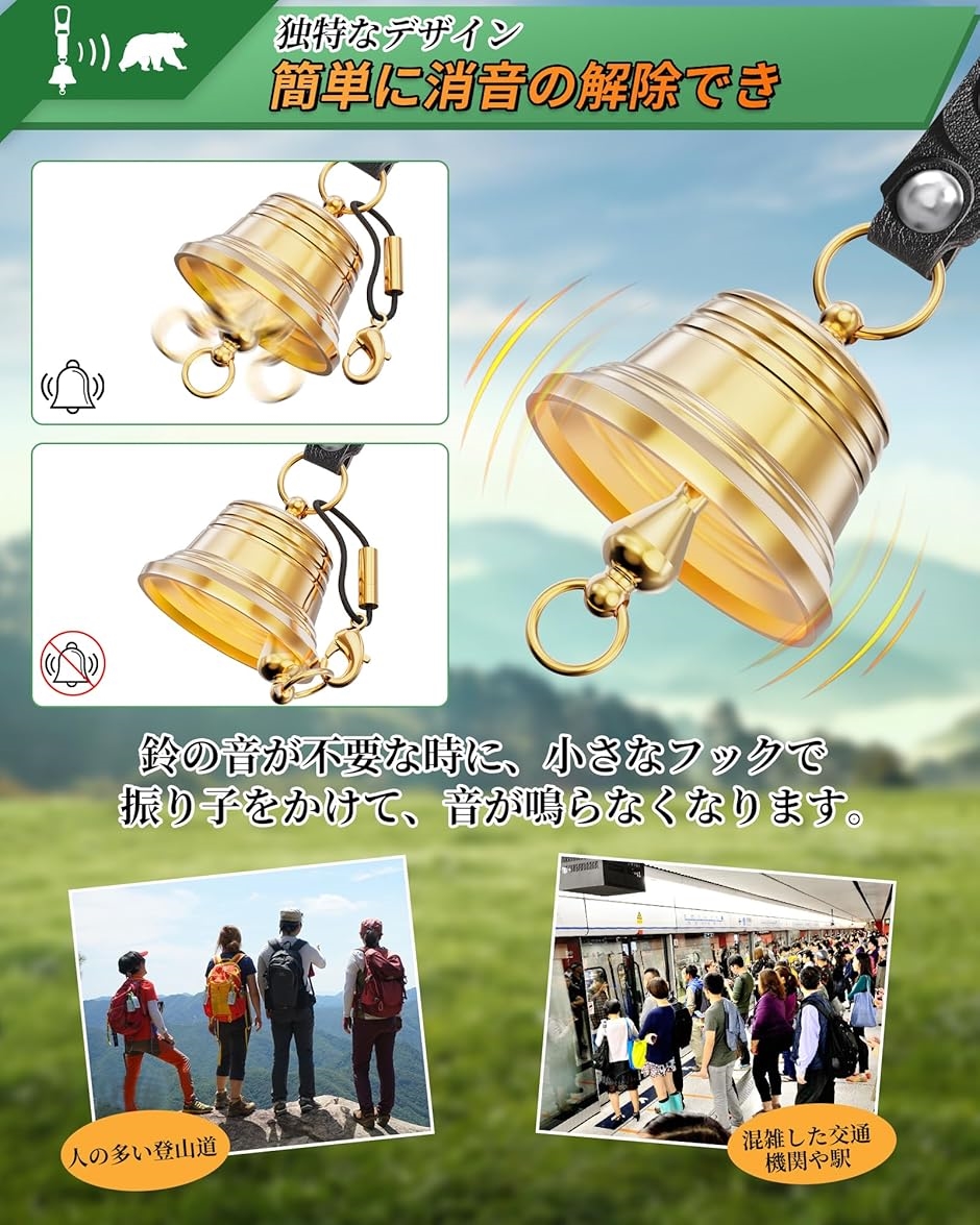 「熊からあなたを守る鈴が登場。」熊よけ鈴は、特定の音や震動の周波数が、熊などの野生動物に対して威嚇や驚きを与える効果があるという原理に基づいています。