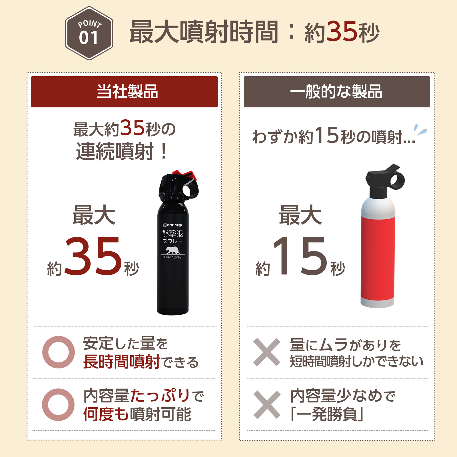 さらに約35秒の連続噴射が可能で、いざという場面でも頼れる性能を発揮します。
