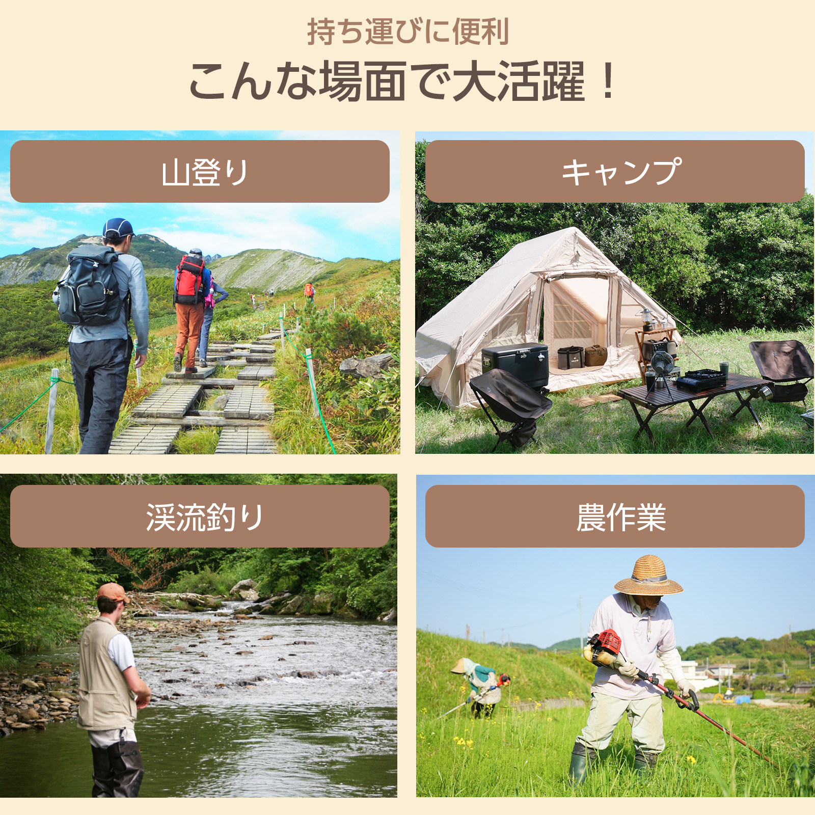 登山やトレッキング、キャンプなどアウトドアシーンの備えとして最適です。