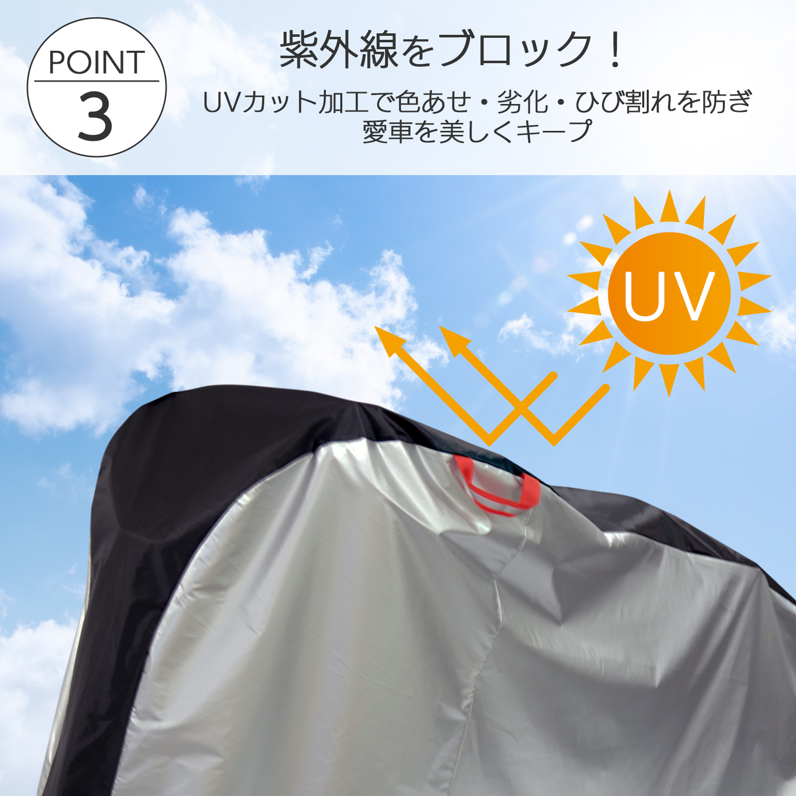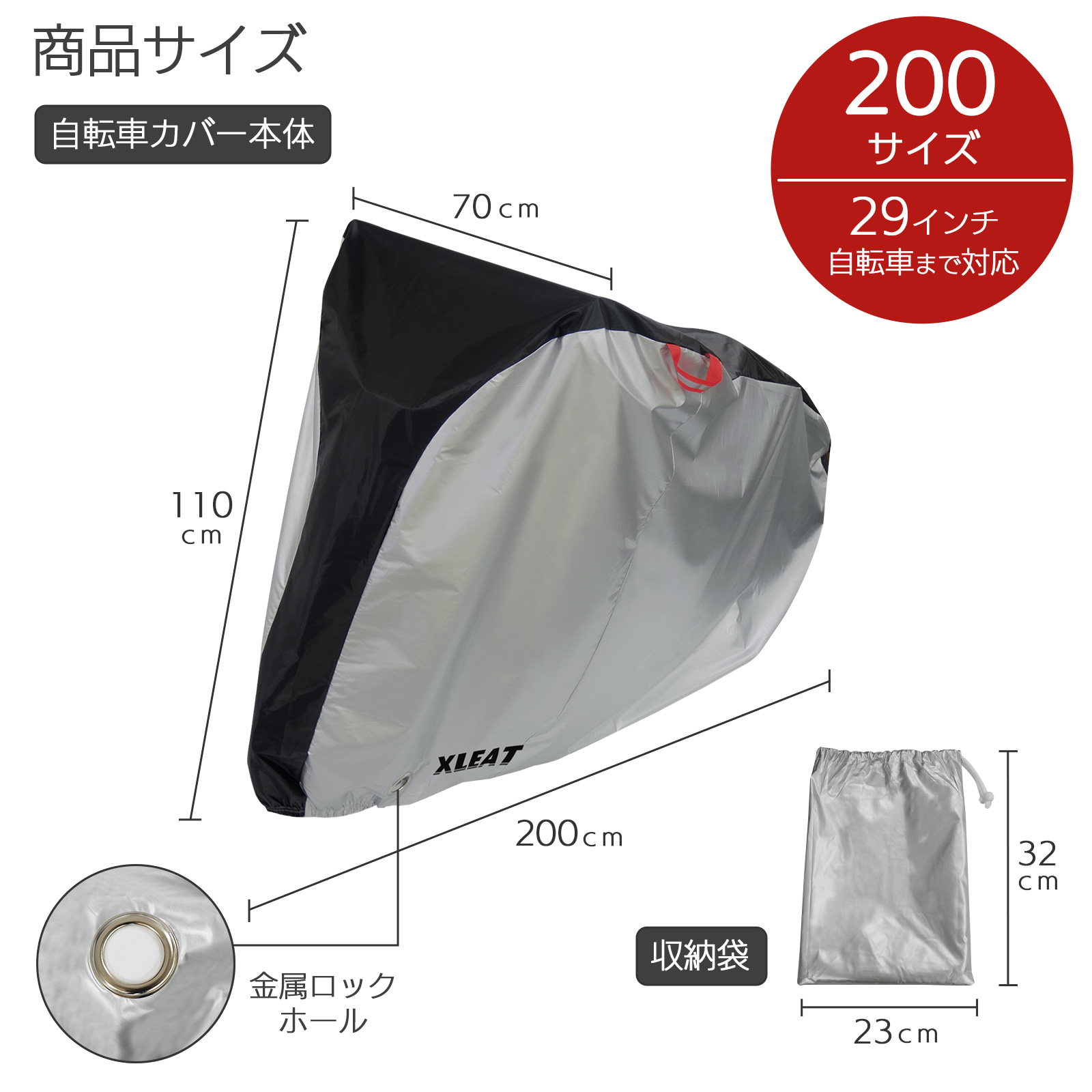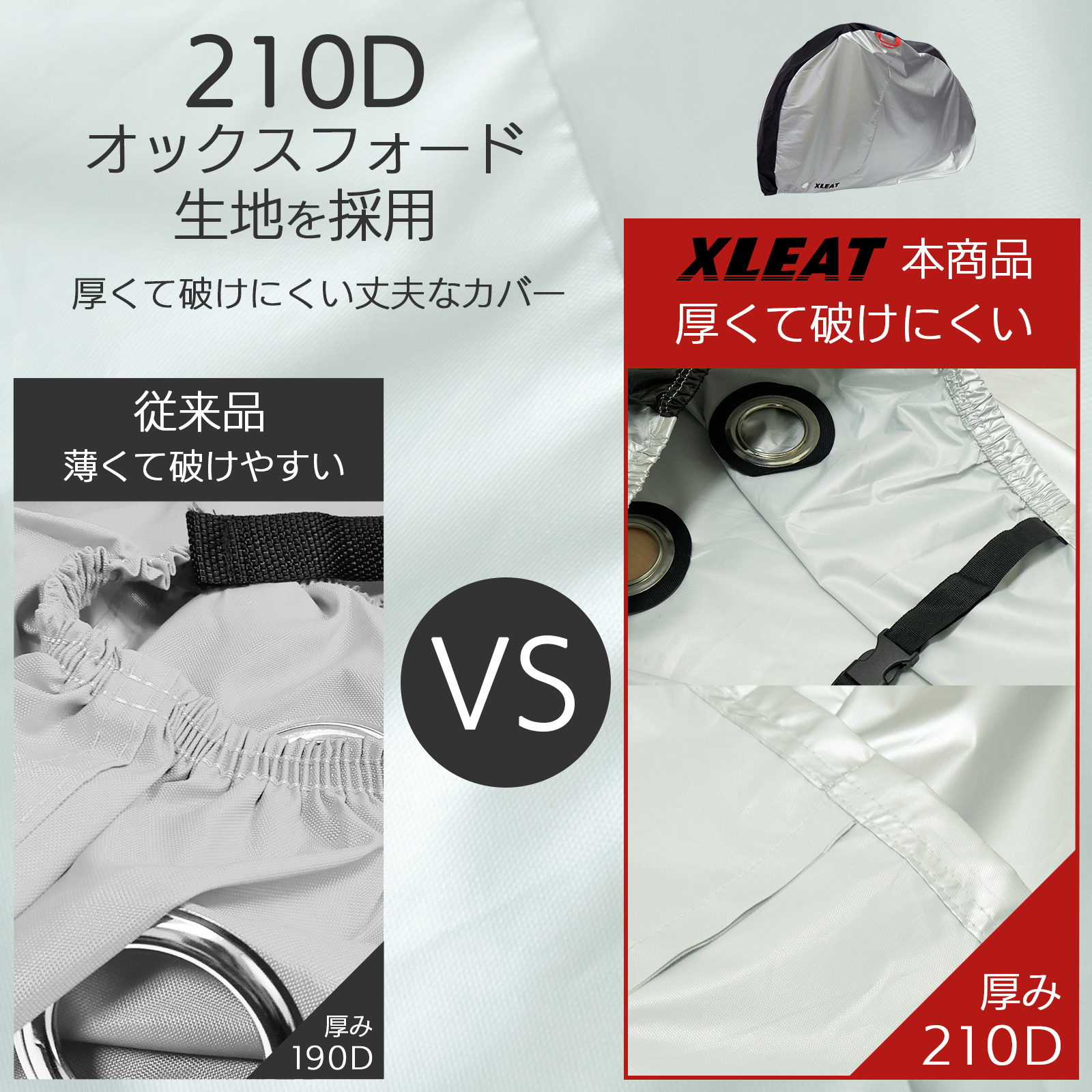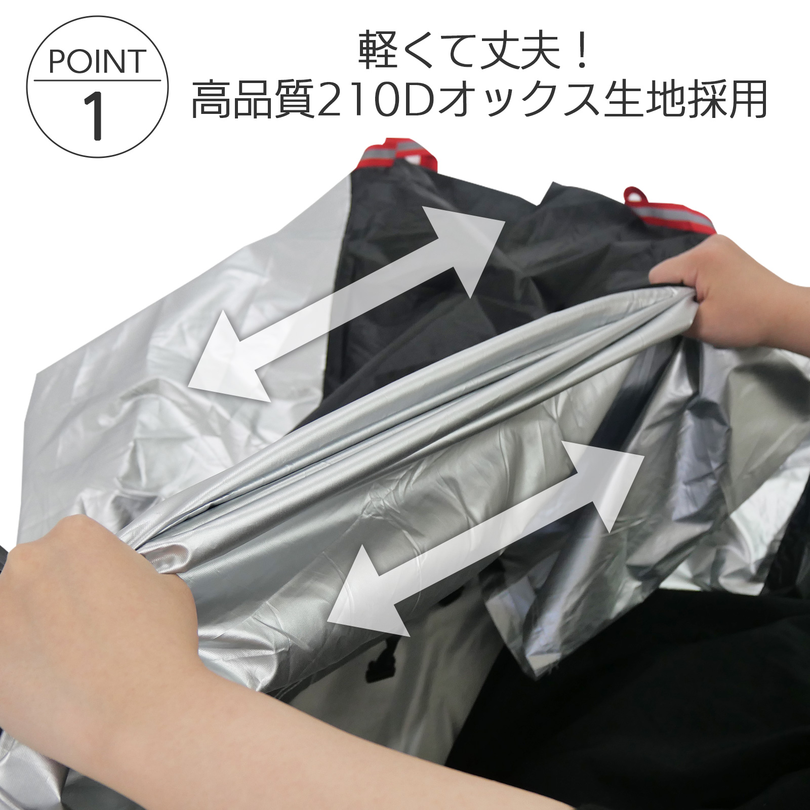 厚手で丈夫な210Dオックス生地を使用し、UV・雨・風・砂埃から大切な自転車を守ります。
