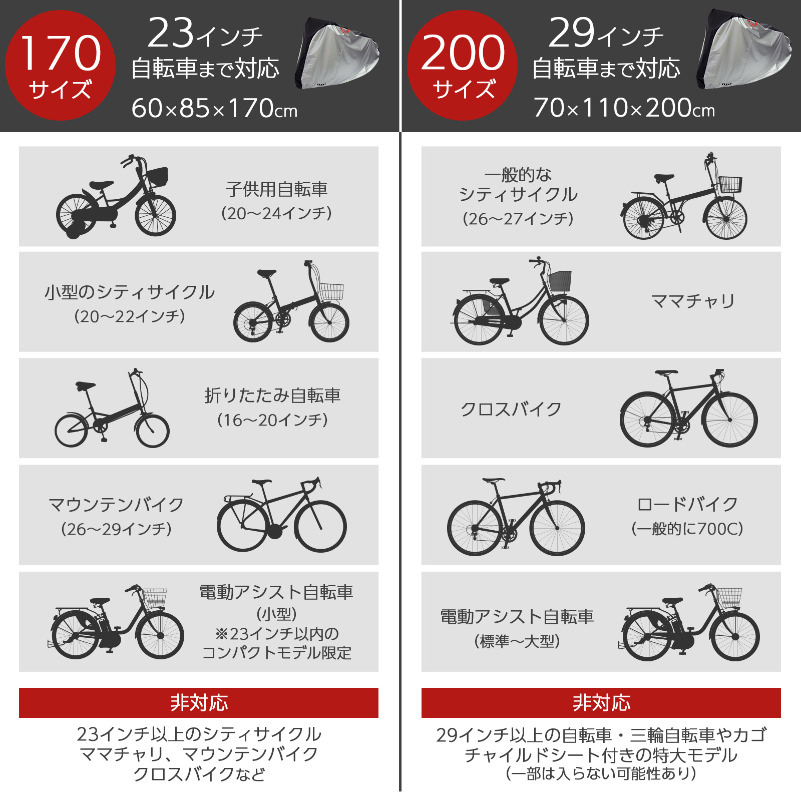 29インチの自転車まで対応※詳細は目安表をご確認ください。