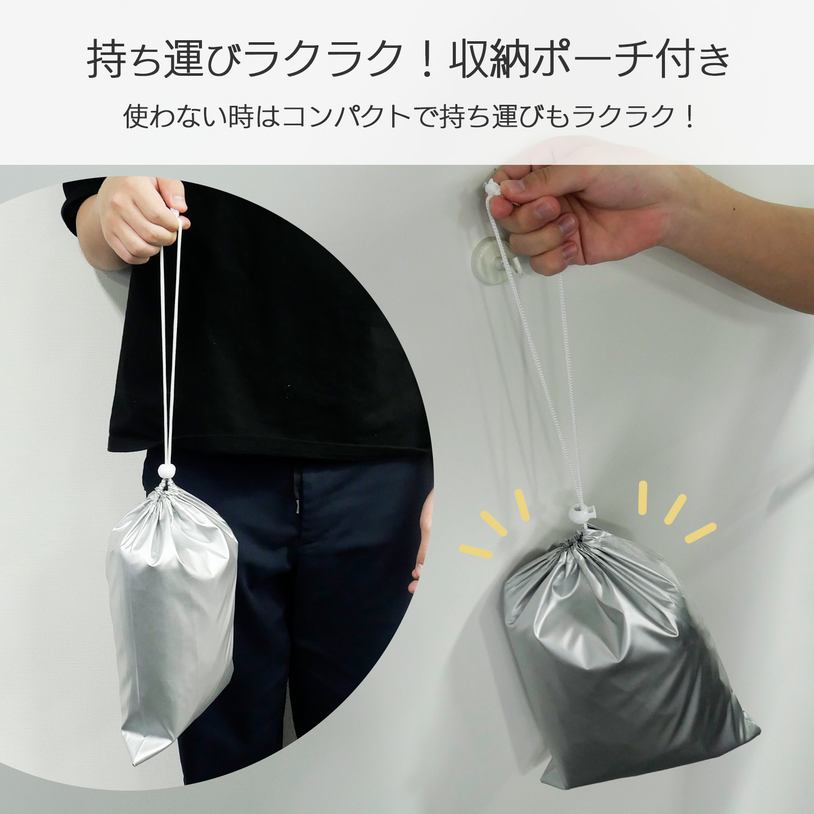 未使用時は付属の収納袋に入れて、持ち運びや保管も簡単。