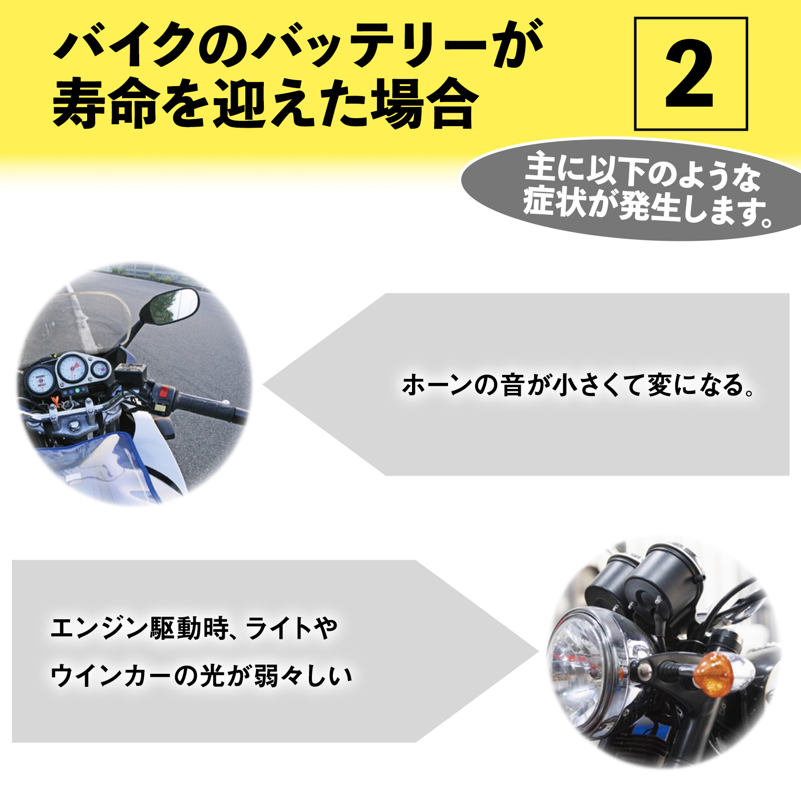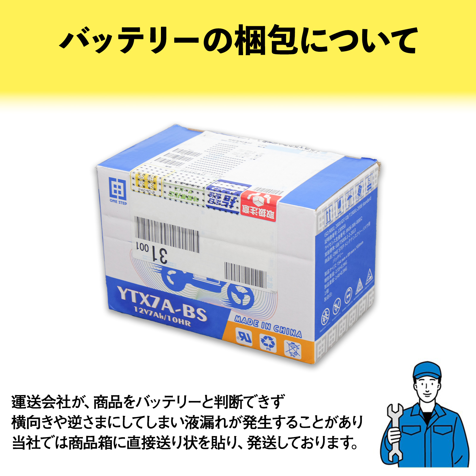 制御弁式・液入り充電済みタイプのバッテリーのため、