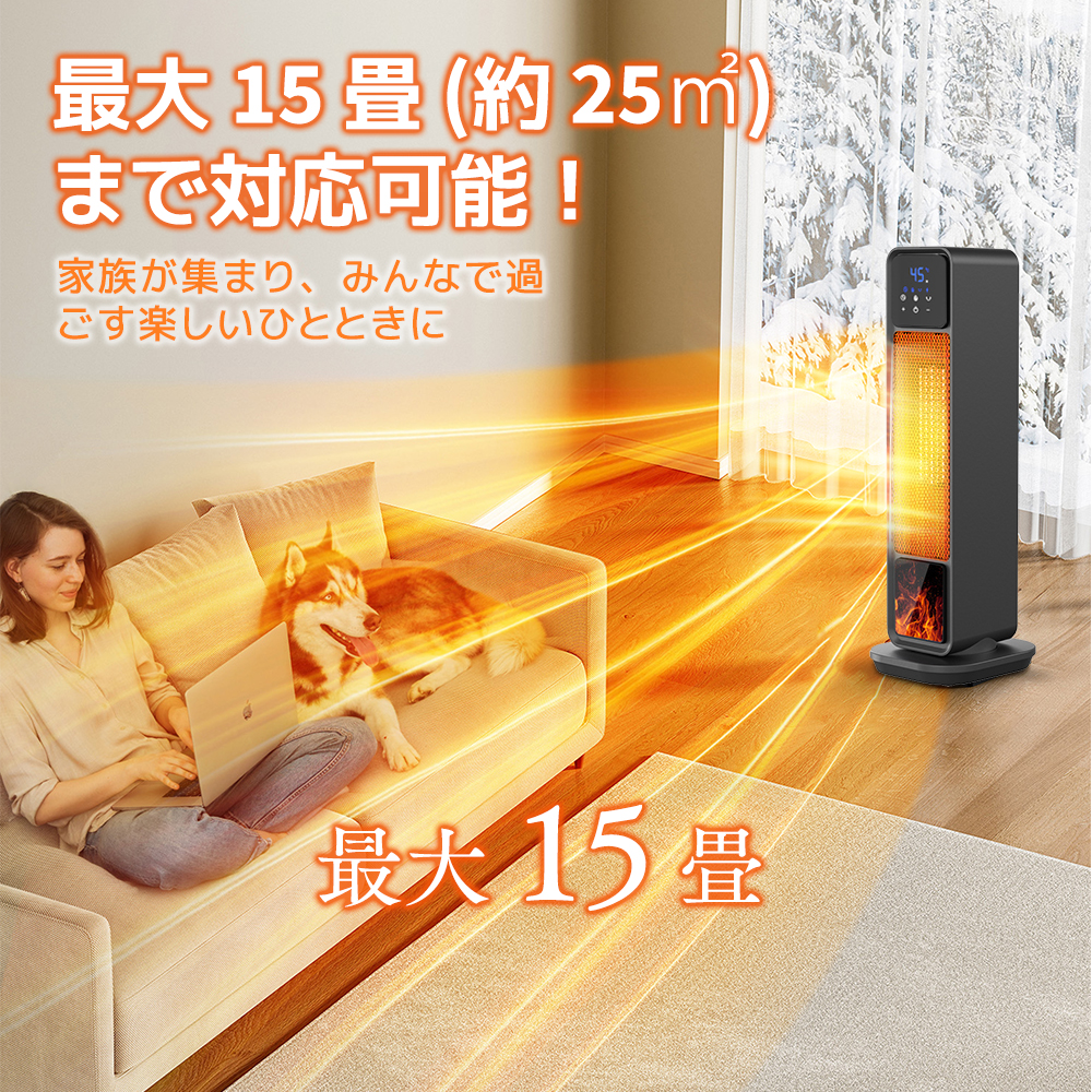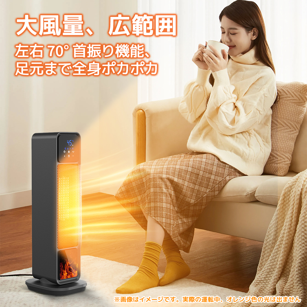 また、自動首振り機能が付き、左右90°の範囲で回転し、セラミックヒーター温風をもっと広い範囲まで届けられます。