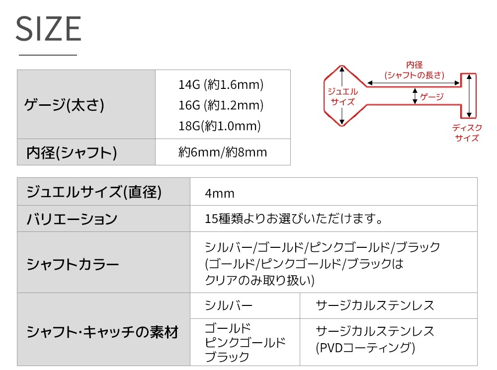 ゲージ(mm):(18G)1.0mm/(16G)1.2mm/(14G)1.6mm