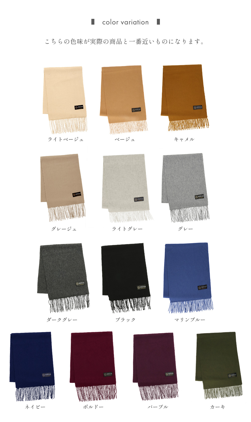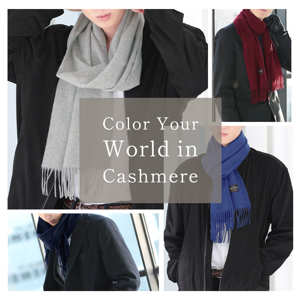 カシミヤマフラー メンズ 無地 カシミヤ100% ブランド Attivo ショール 薄手 ATCM01