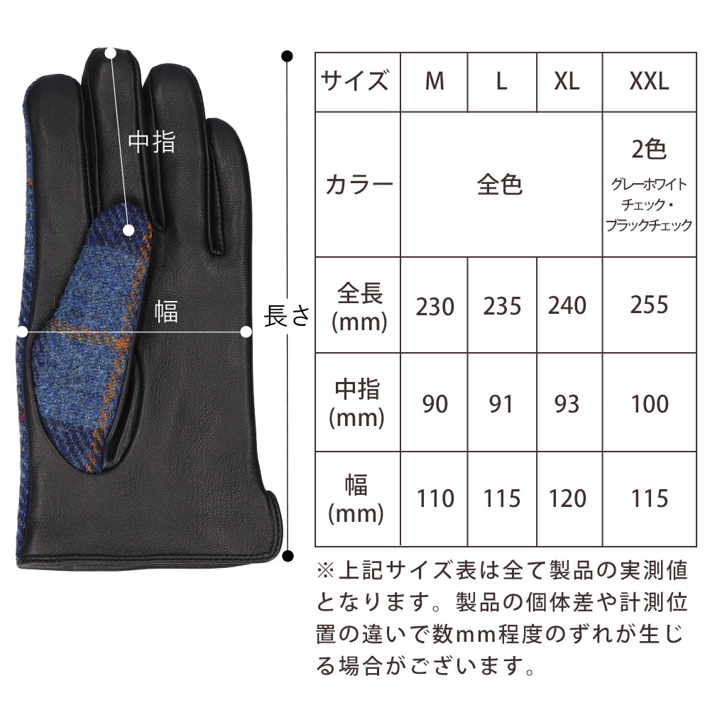 ・XXLサイズ:全長 約245mm/中指 約95mm/幅 約125mm