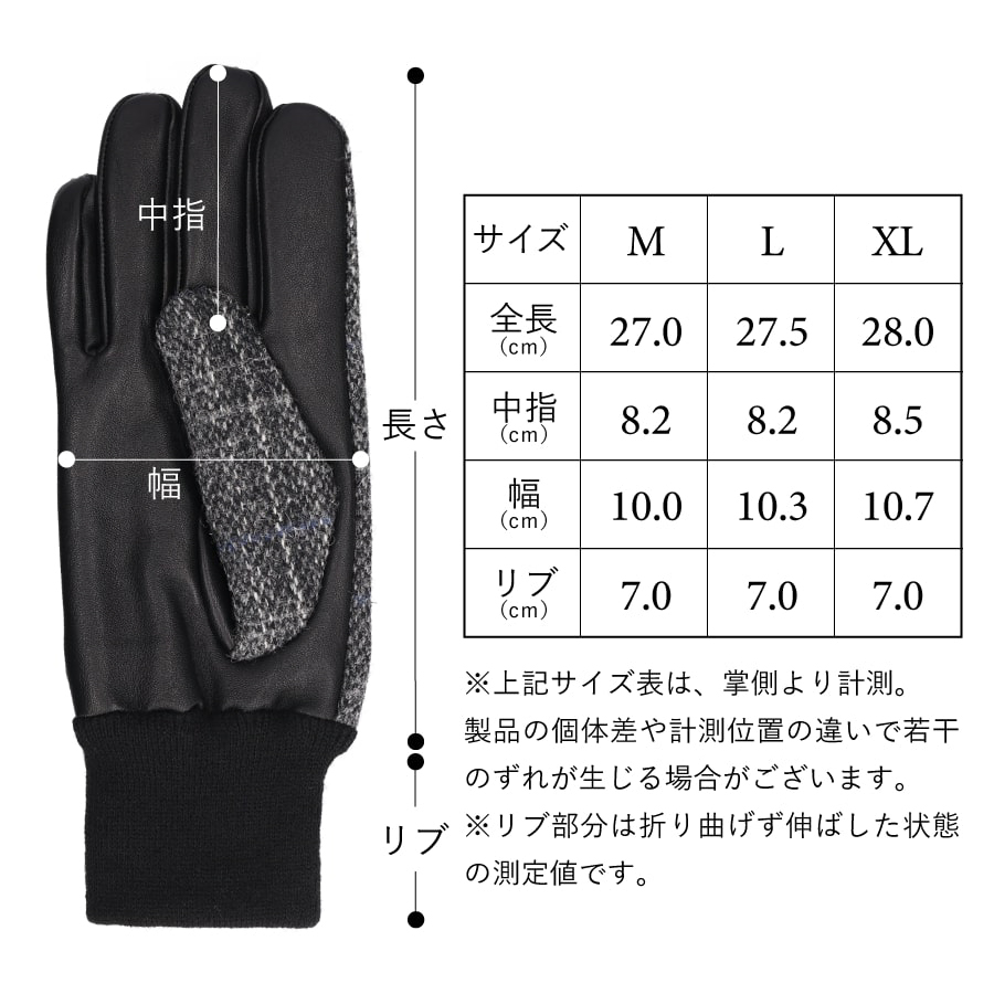 ・Mサイズ:全長 約270mm/中指 約90mm/幅 約100mm