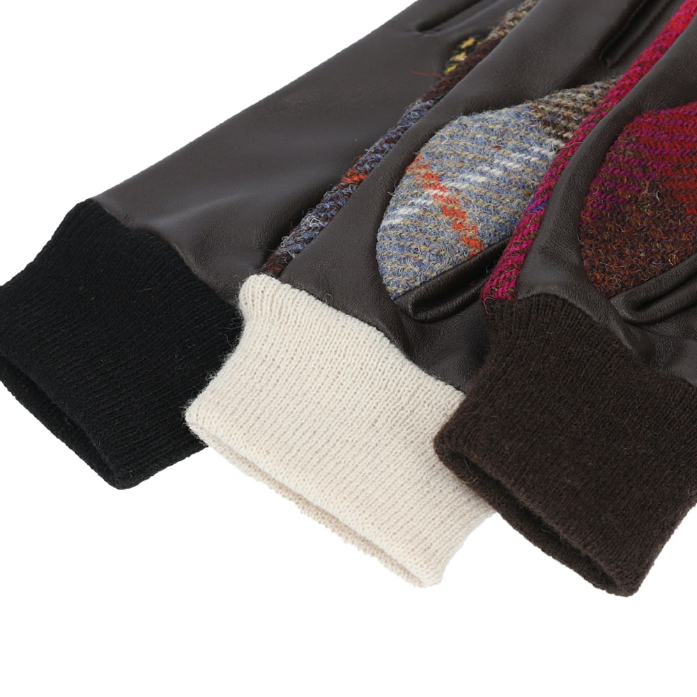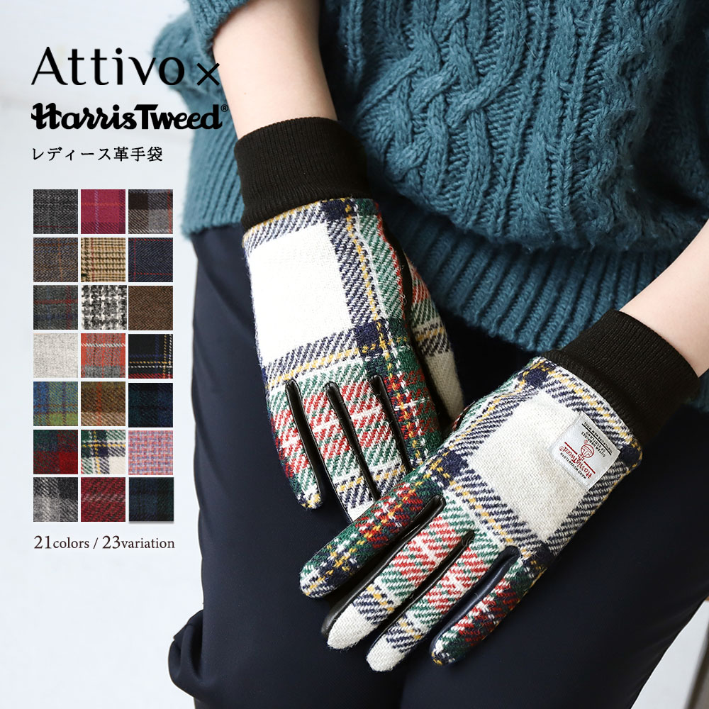 スマホ対応 ハリスツイード 本革 リブ付 レザーグローブ Attivo HarrisTweed 革手袋 レディース 革 タッチパネル対応 ベルベット ウール 上質 高級 防寒 ギフト プレゼント クリスマス ギフト 記念日 彼女 奥様
