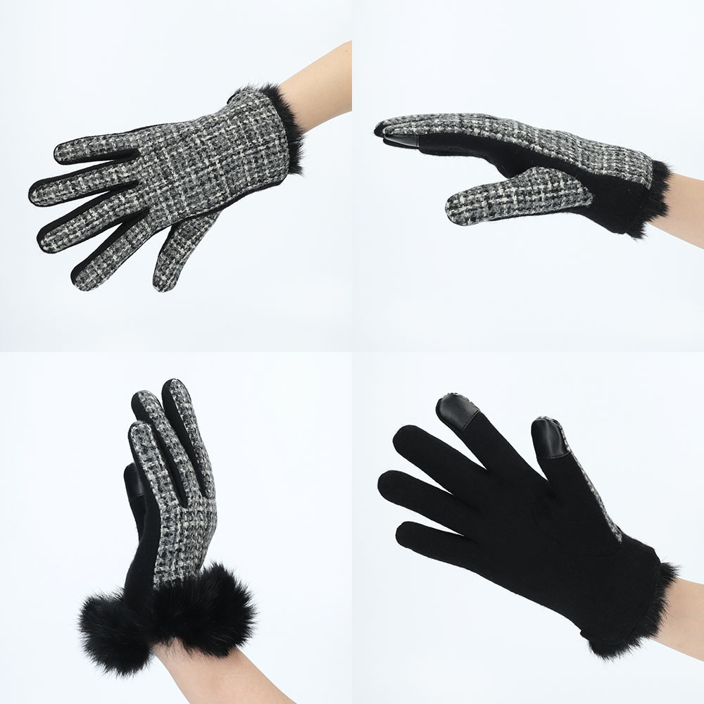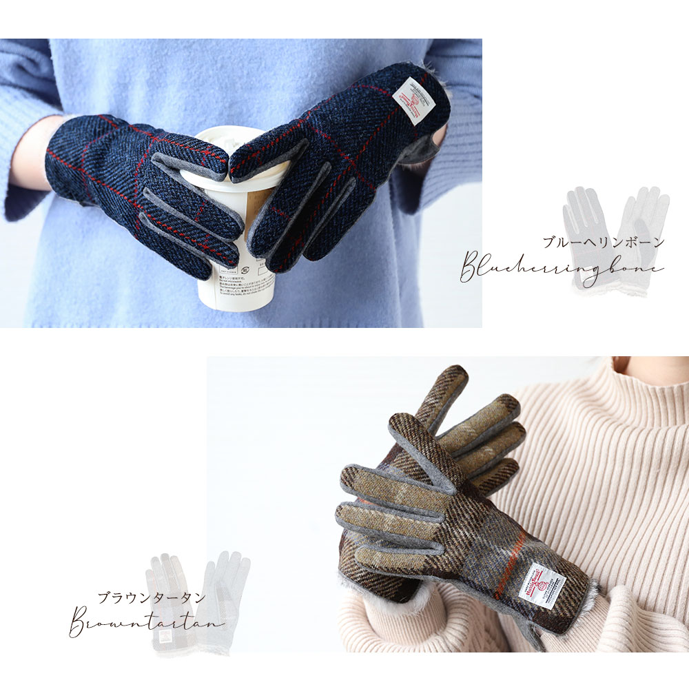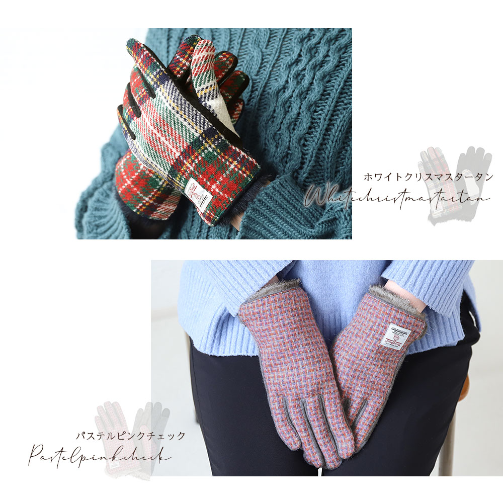 ハリスツイード 手袋 レディース スマホ対応 ラビットファー付 裏地付き ブランド Attivo ATHT06