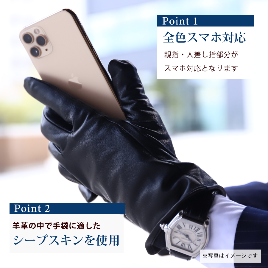 革手袋 メンズ スマホ対応 レザーグローブ 羊革 裏地付き ブランド Attivo ATKU010