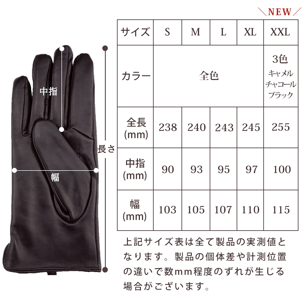 ■XXLサイズ:全長25.5cm、中指10.0cm、幅11.5cm