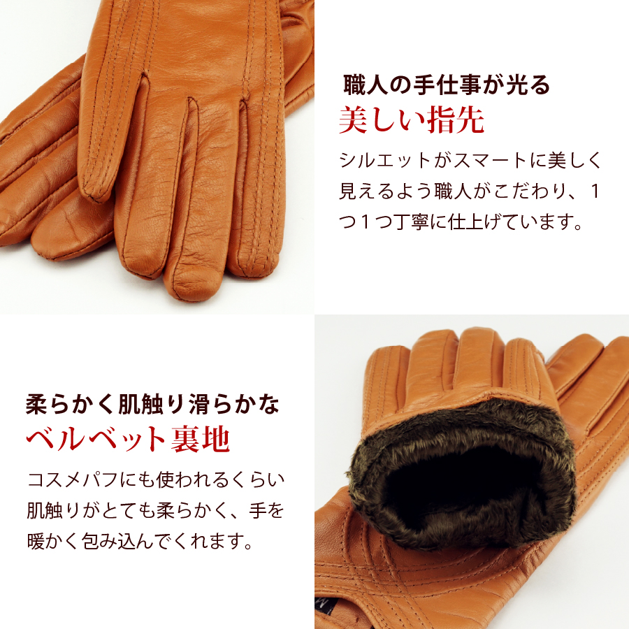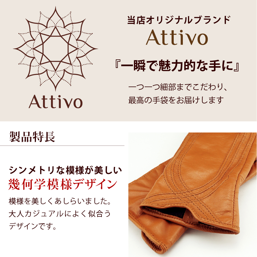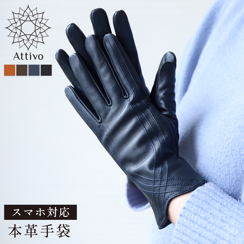 革手袋 レディース スマホ対応 本革 レザーグローブ ブランド Attivo ベルベット裏地付 ATKU036
