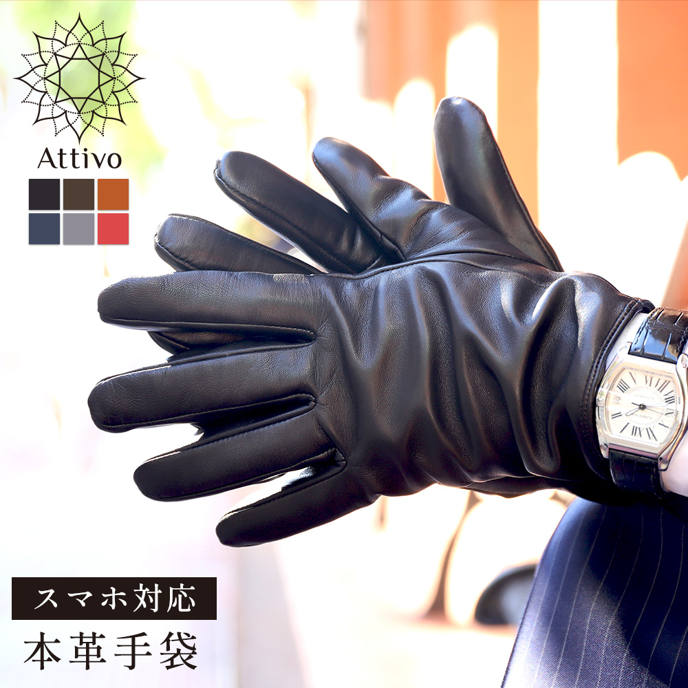 革手袋 メンズ スマホ対応 本革 レザーグローブ 裏地カシミヤ100% ブランド Attivo ATLC001