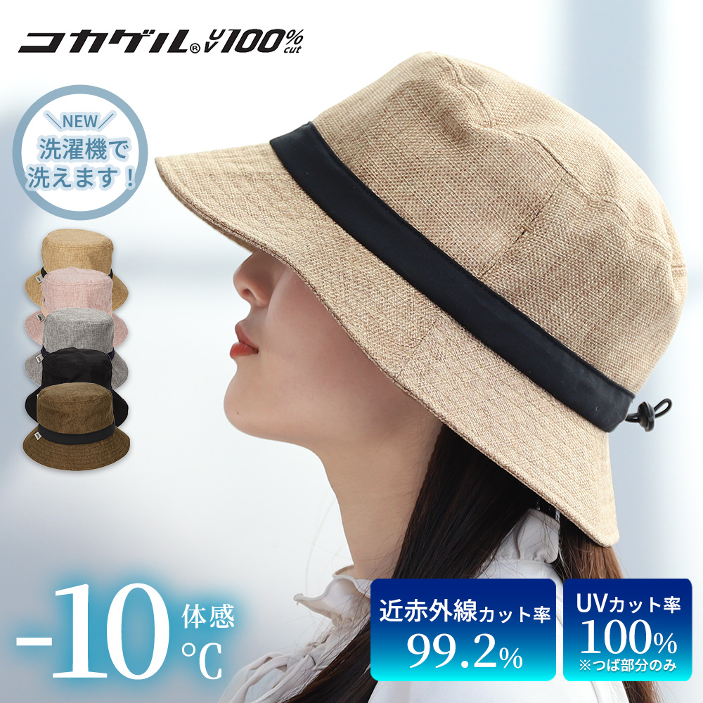 コカゲル 帽子 バケットハット UV100% 紫外線カット 熱中症対策 レディース つば広 折りたためる 深め CC2P803 母の日