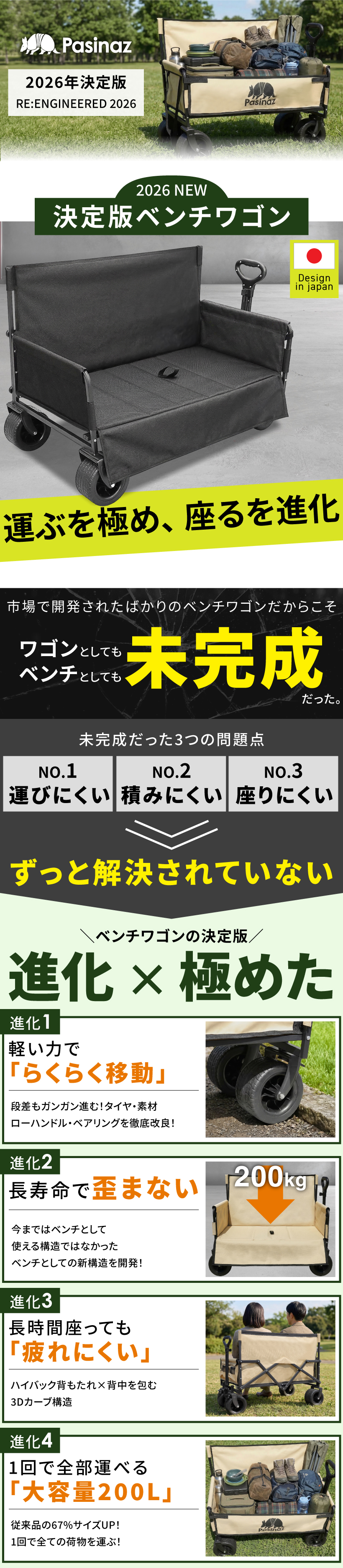 ★期間限定価格 4/27まで★ ベンチキャリーワゴン アウトドアワゴン キャリーワゴン キャリーカート 片手ハンドル 大容量