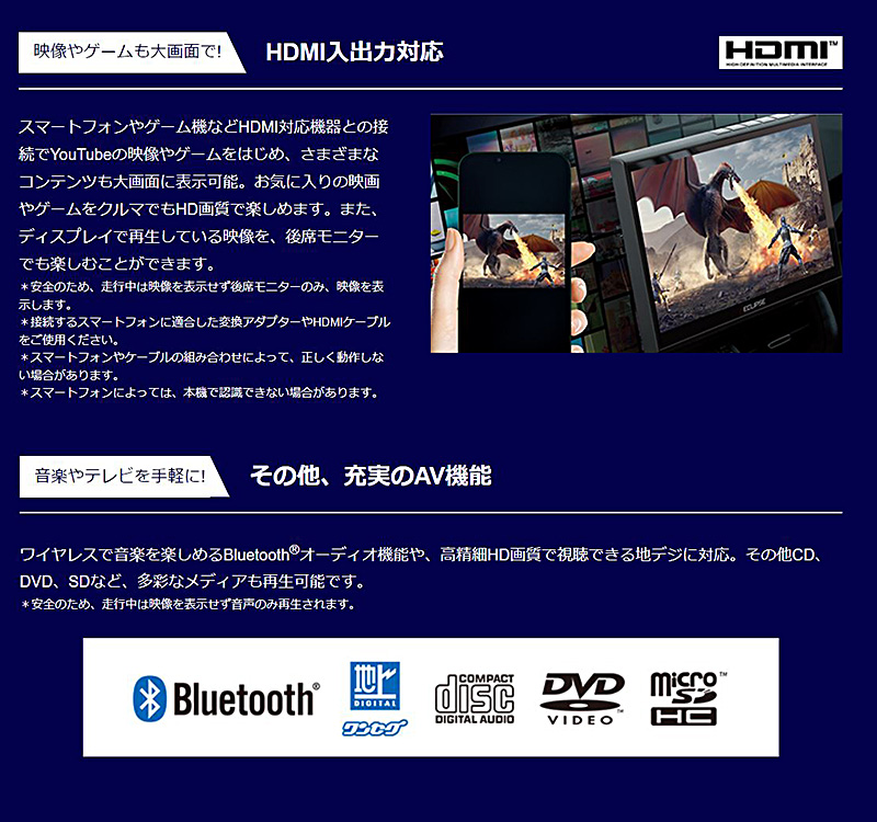 DAV-DS01F【地デジチューナー搭載・DVD/SD再生可能】DENSO TEN デンソーテン ECLIPSE イクリプス 高精細HD画質&大画面 10.1型ディスプレイオーディオ