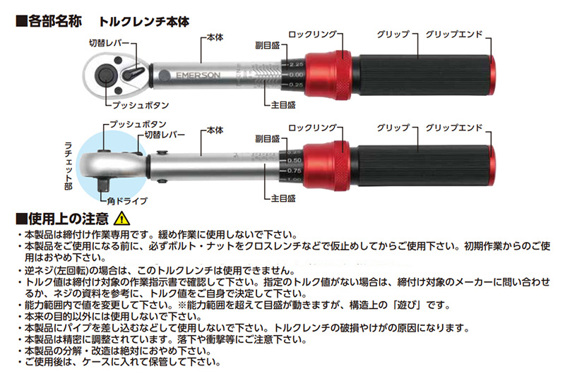 EM-394 EM394 ニューレイトン NEW RAYTON エマーソン EMERSON トルクレンチ 5-40N.m 差込角6.35mm(1/4in) 収納ケース付属 本体:40CR鋼材 重量334g