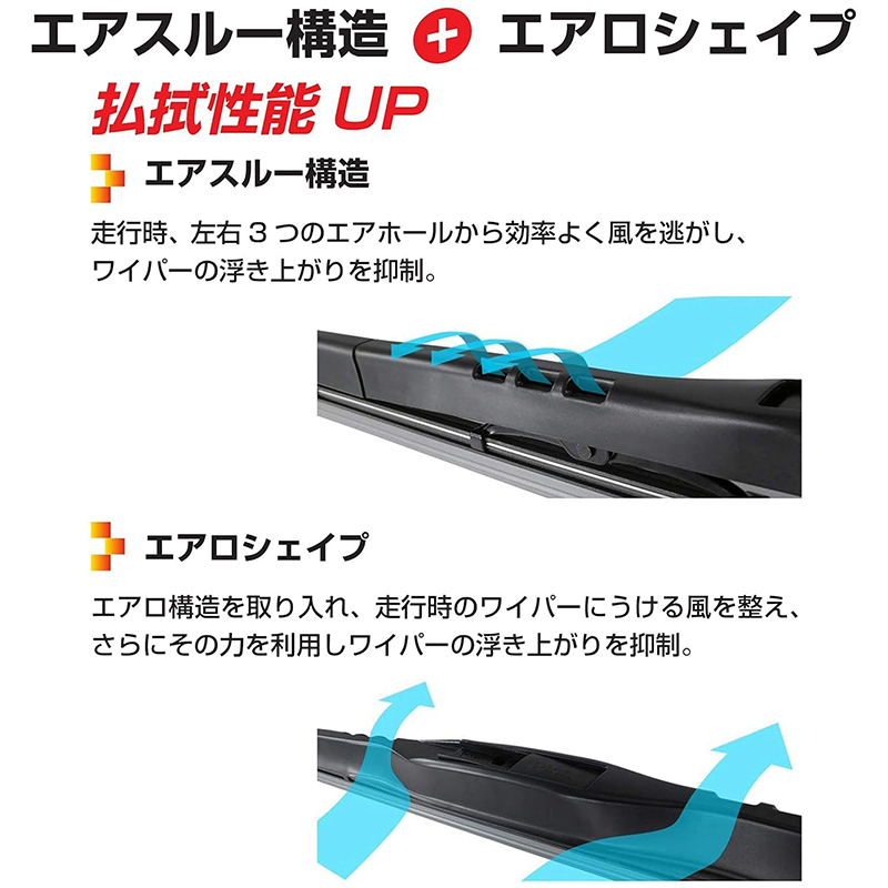 抜群の払拭性能にスタイリッシュなデザインを実現したデザインワイパー。シリコンゴム採用、拭くだけで撥水コーティング!長さ550/350mmのセットです。