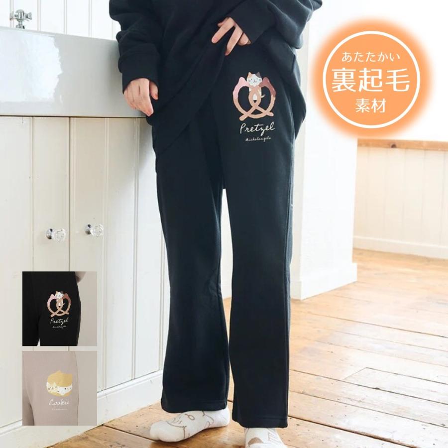 スウェット フレアパンツ 脚長効果 あたたかい 裏起毛 ゆったり やわらか ウェストゴム仕様 ねこ 猫 ネコ アニマル ルームウエア リラックスウエア 部屋着 レディース 秋冬 かわいい プレゼント ギフト 誕生日 記念日 母の日 ふくふくにゃんこ