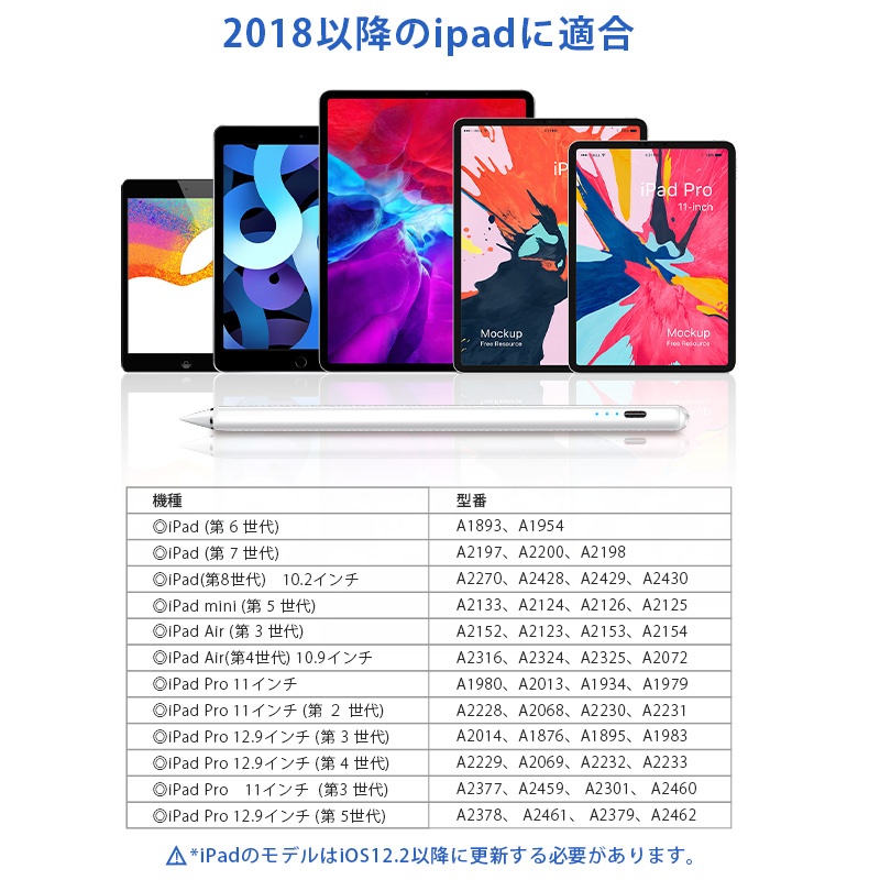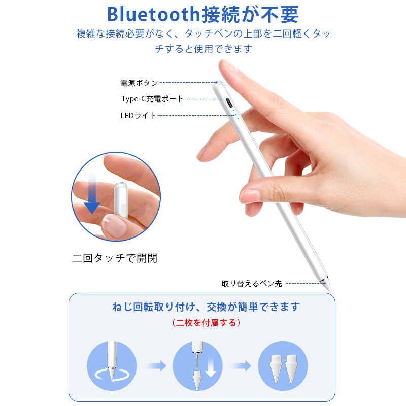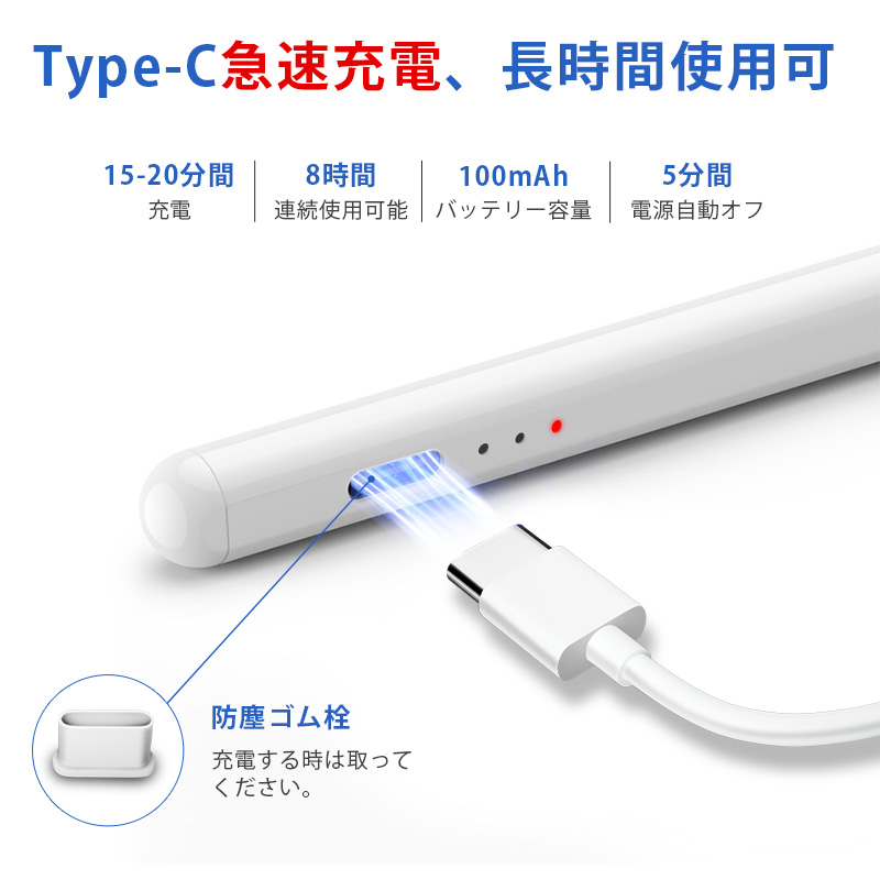 超高感度 タッチペン ipad スタイラスペン 高精度 傾き感知 タッチペン 極細 タッチペン 磁気吸着 軽量 タブレット タッチペン Type-C充電