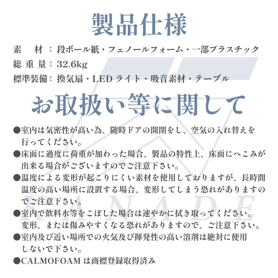 【標準装備】換気扇・LEDライト・吸音素材・テーブル
