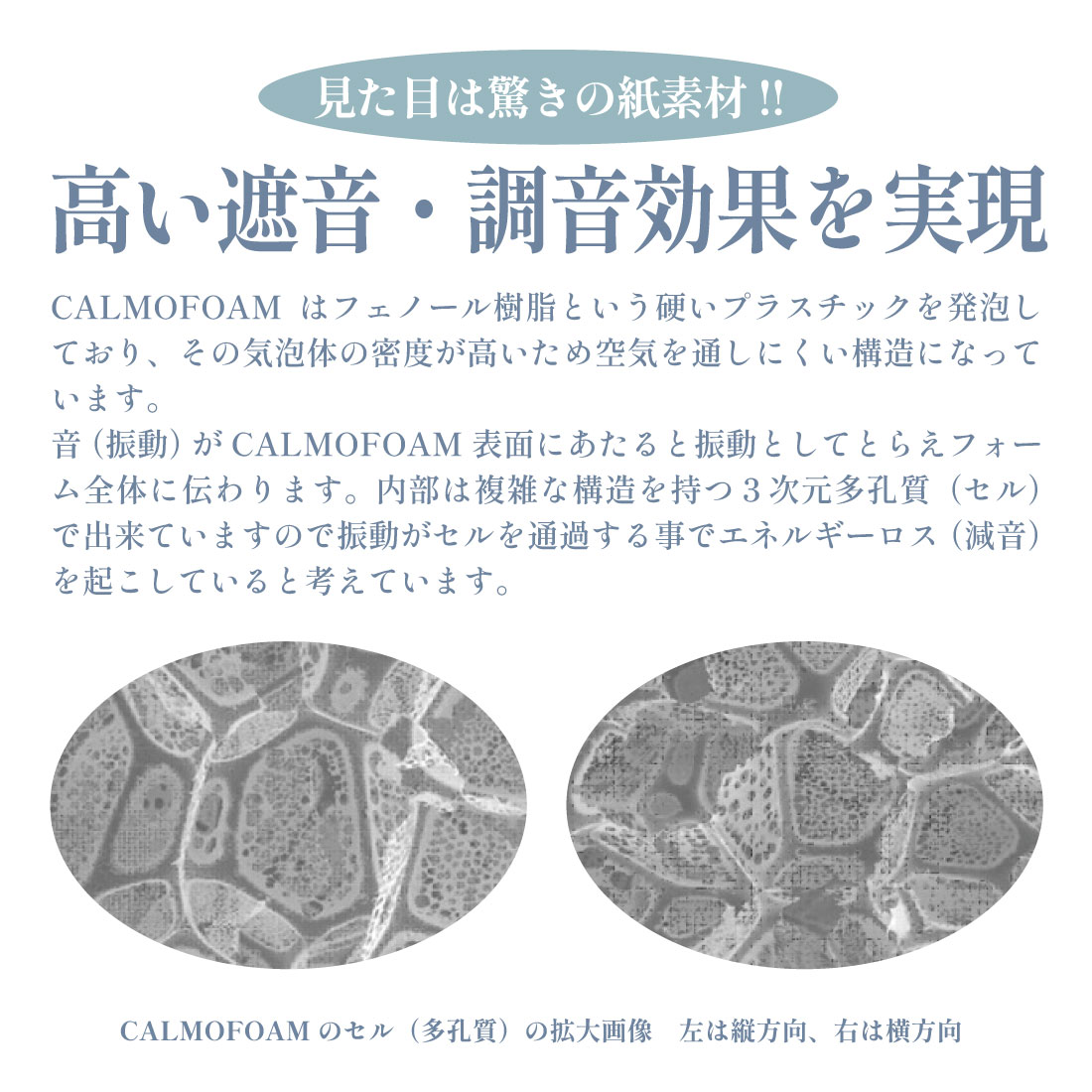 『CALMOFOAM』の特性を利用している為、室内での音の反射を抑える事ができ、