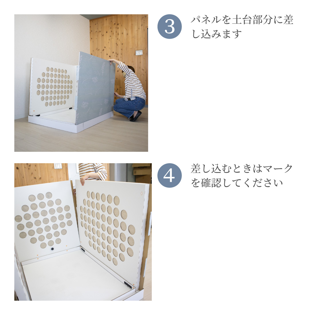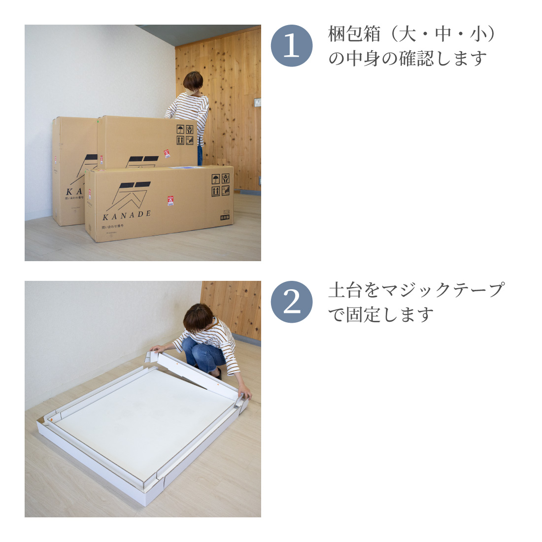 素材が軽く取り扱いが容易で、組立てはわずか30分程度。